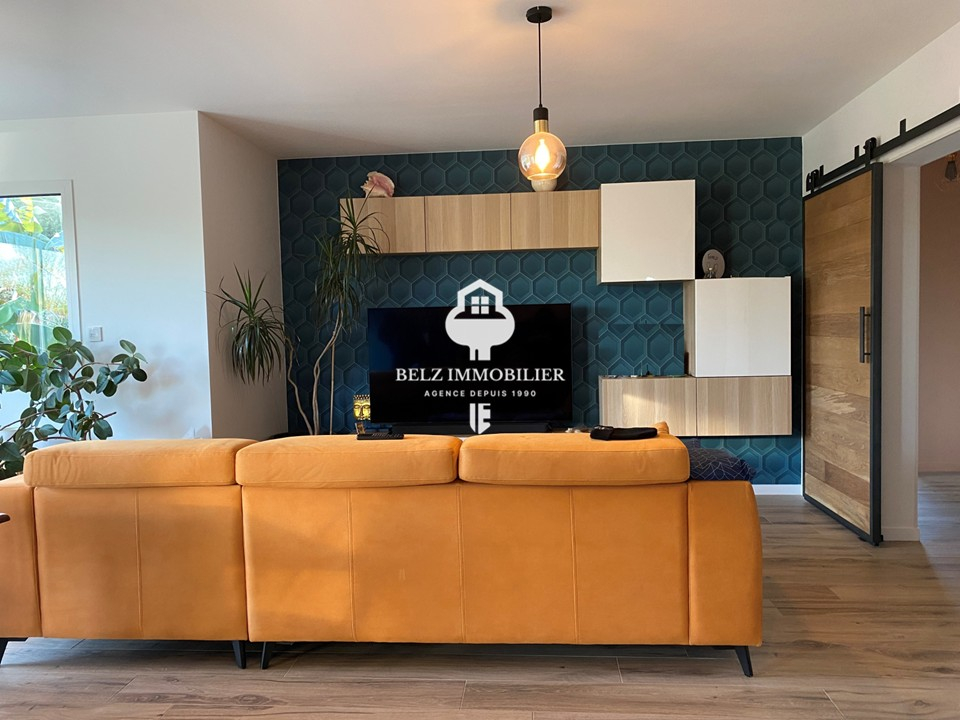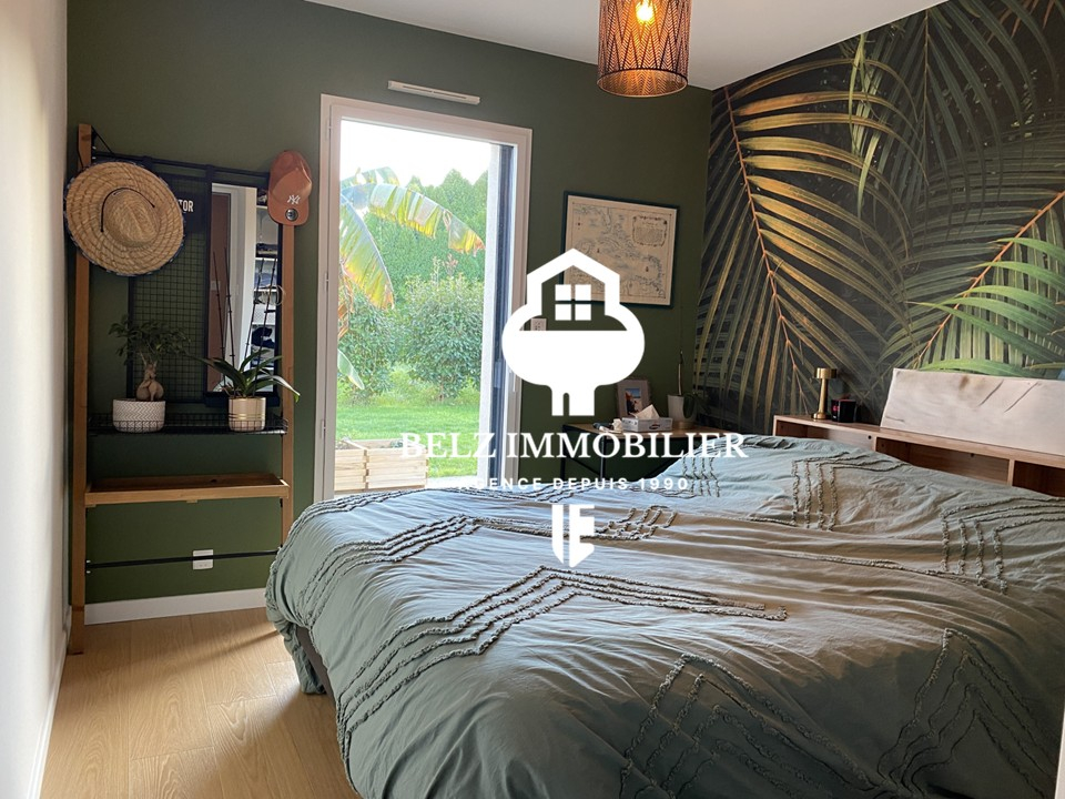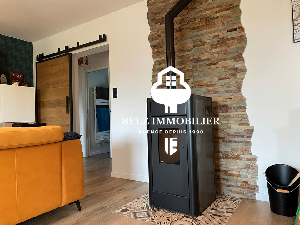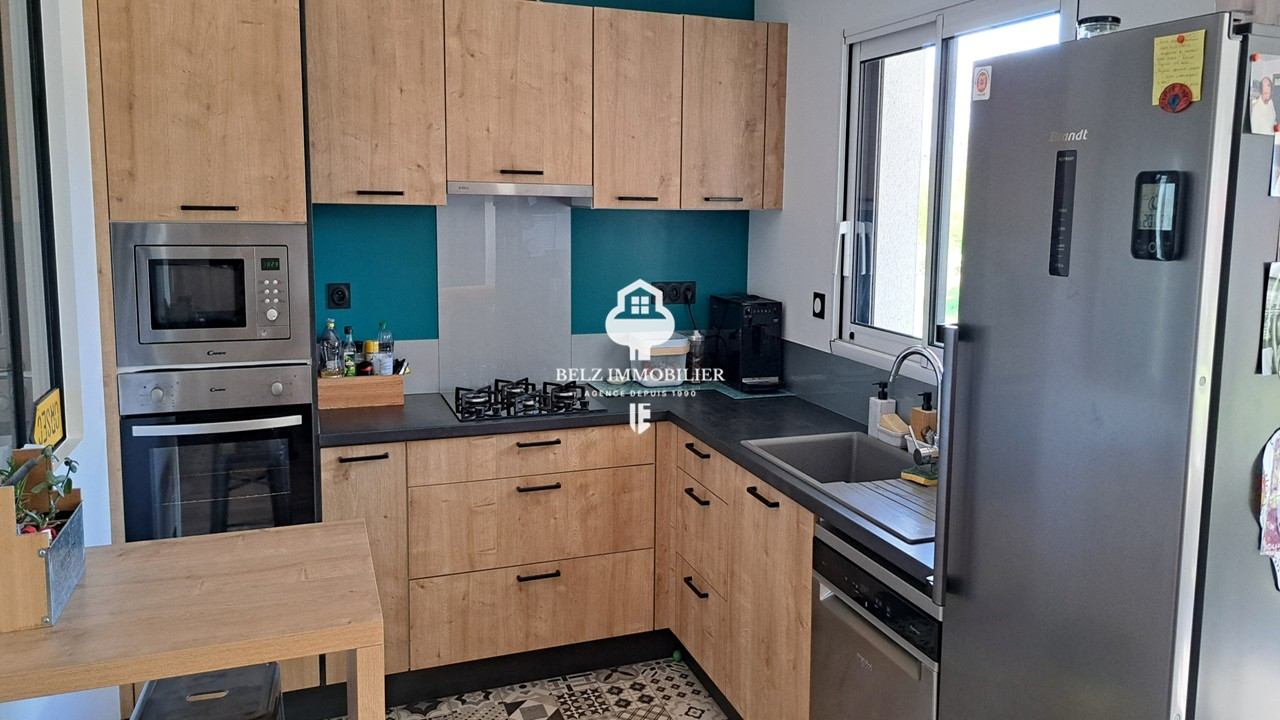 Ici, on se sent chez soi dès la première seconde. L'agence Belz immobilier vous propose une superbe maison située au calme, entre terre et mer sur la commune de Belz. Édifiée en 2018 et entièrement de plain pied, on y accède par un hall d'entrée avec verrière donnant directement sur une cuisine équipée et aménagée. Une pièce de vie salle / salon avec poêle à granules, et deux accès terrasse. L'habitation comprends trois chambres dont une avec une terrasse privative pour plus de confort. Une salle d'eau spacieuse et un WC séparé. Un garage, un grenier, un cellier et un TERRAIN de 573m² complètent cette habitation.