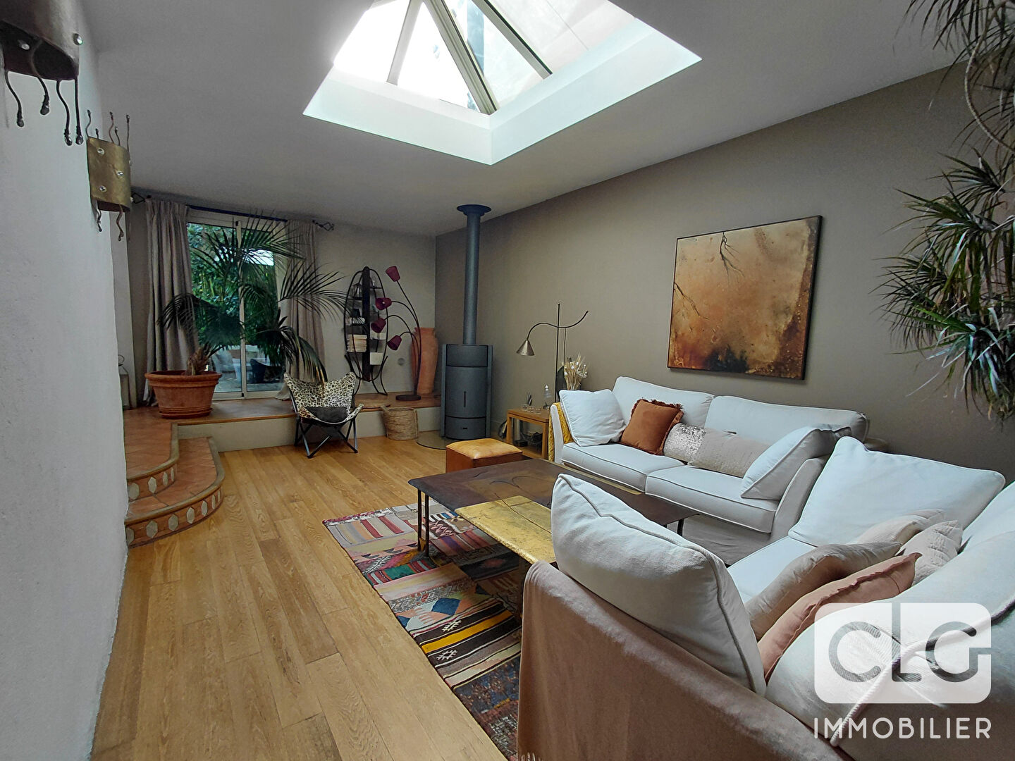 Cette magnifique maison atypique avec sa terrasse, dans un esprit chaleureux, mélangeant, avec harmonie, architecture ancienne et récente vous invitation à la détente en famille ou entre amis