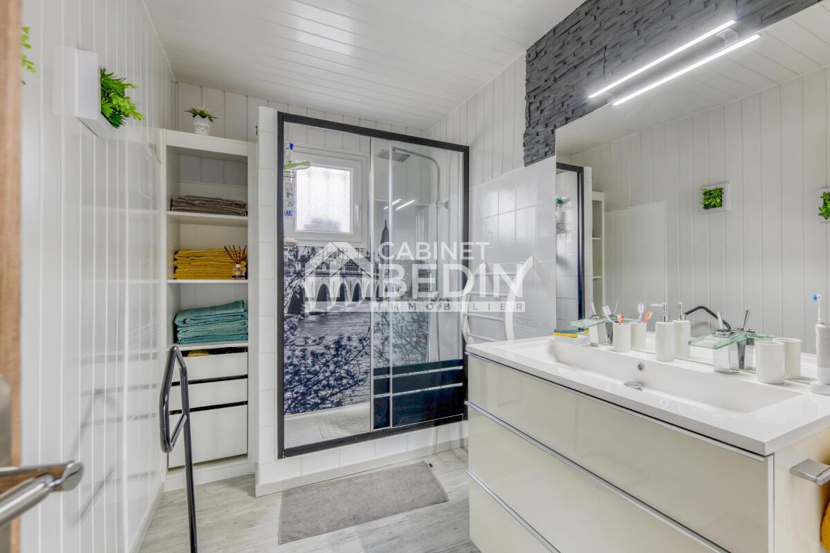 Exclusivité CABINET BEDIN - SAINT LOUBES. Maison familiale de 128 m². Dès l'entrée, découvrez un salon spacieux et lumineux de plus de 50m² avec une cuisine ouverte équipée et moderne donnant sur une véranda et un cellier. pour le côté nuit : trois chambres dont une suite parentale, une salle d'eau, un bureau.