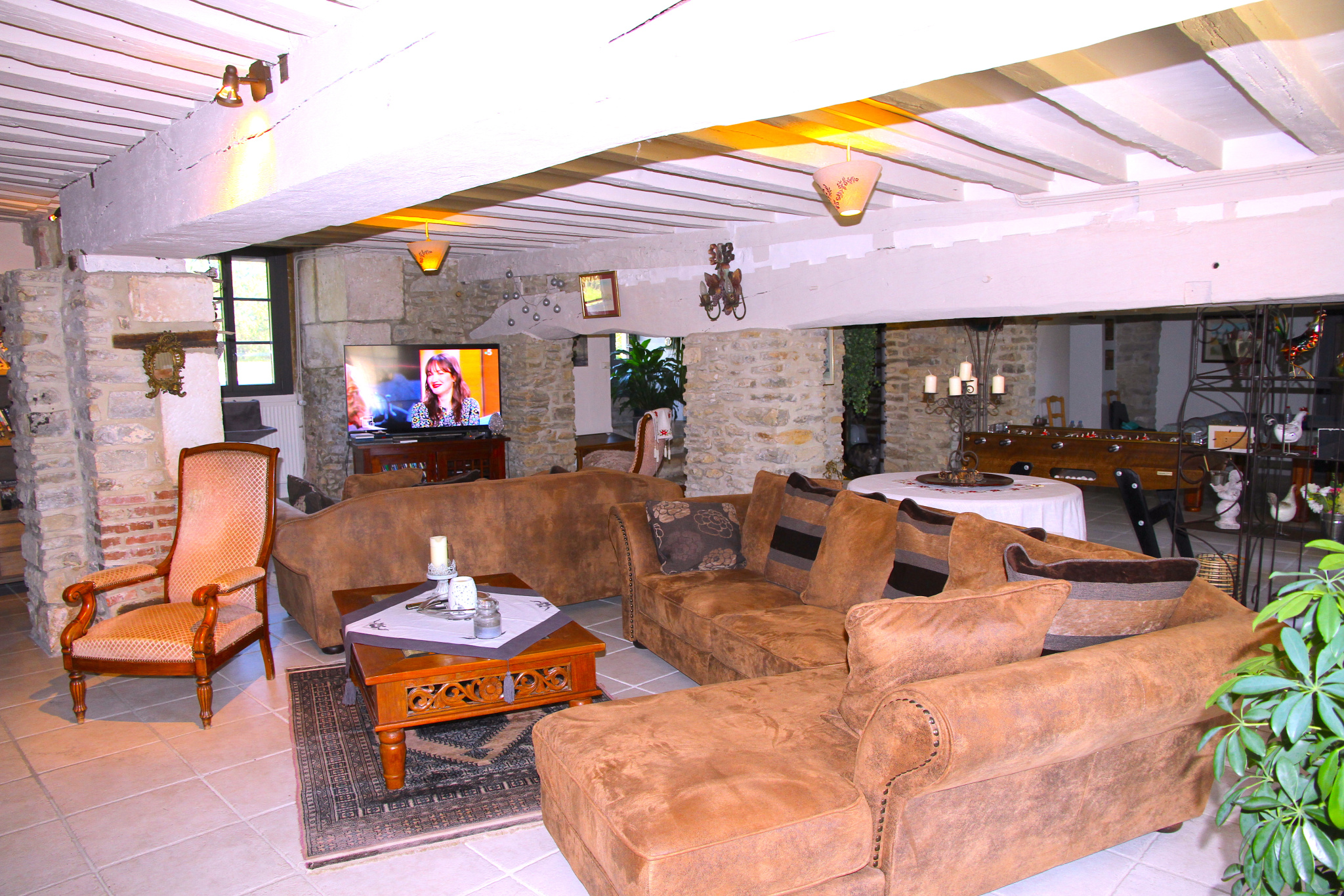 D'un salon de 70 m2, chaleureux et convivial, avec cheminée, grand poêle à bois et espace billard
