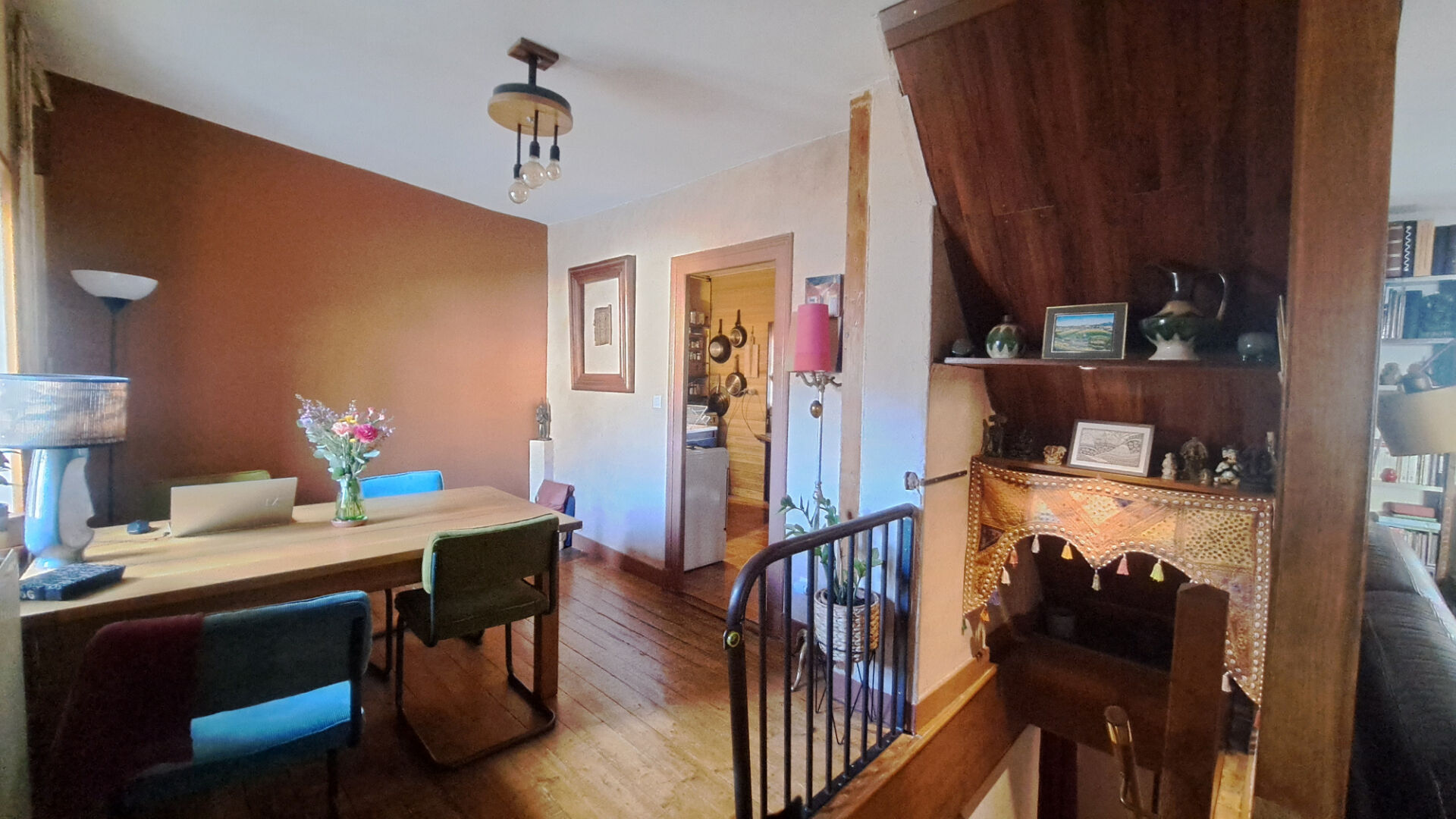 Le rez-de-chaussée comprend un atelier, un bureau, une cave, un WC avec point d'eau et une terrasse de plain-pied. Au 1er étage, se trouvent 2 chambres et un bureau, une salle de bains, un WC séparé et un balcon. Le 2e étage est composé d'une grande pièce de vie traversante avec cuisine et salle à manger, donnant sur un second balcon. Le 3e étage dispose de 2 grandes chambres mansardées, chacune avec point d'eau.