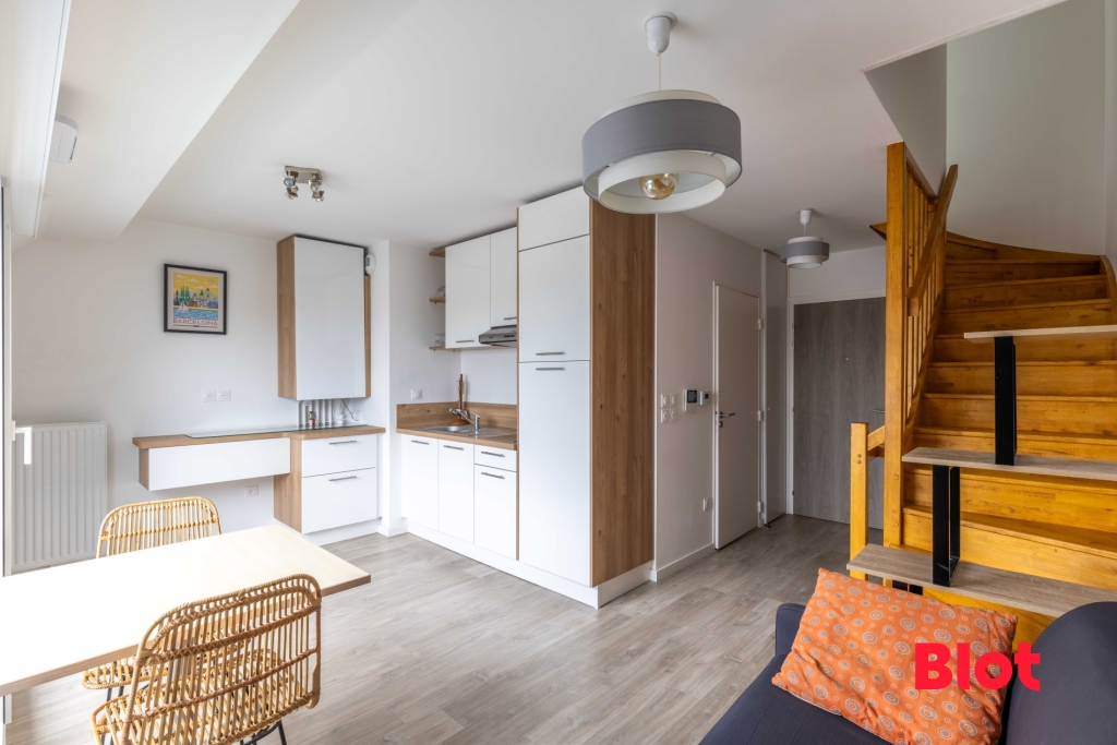Situé en plein cœur Saint Hélier dans une impasse, venez découvrir cet appartement duplex au dernier étage d'une petite copropriété récente (2021). Il se compose d'une pièce de vie avec cuisine intégrée et aménagée donnant sur une terrasse exposée Sud. Vous y trouverez également une entrée ainsi qu'une salle d'eau avec toilettes. A l'étage une belle chambre lumineuse avec coin bureau et dressing.