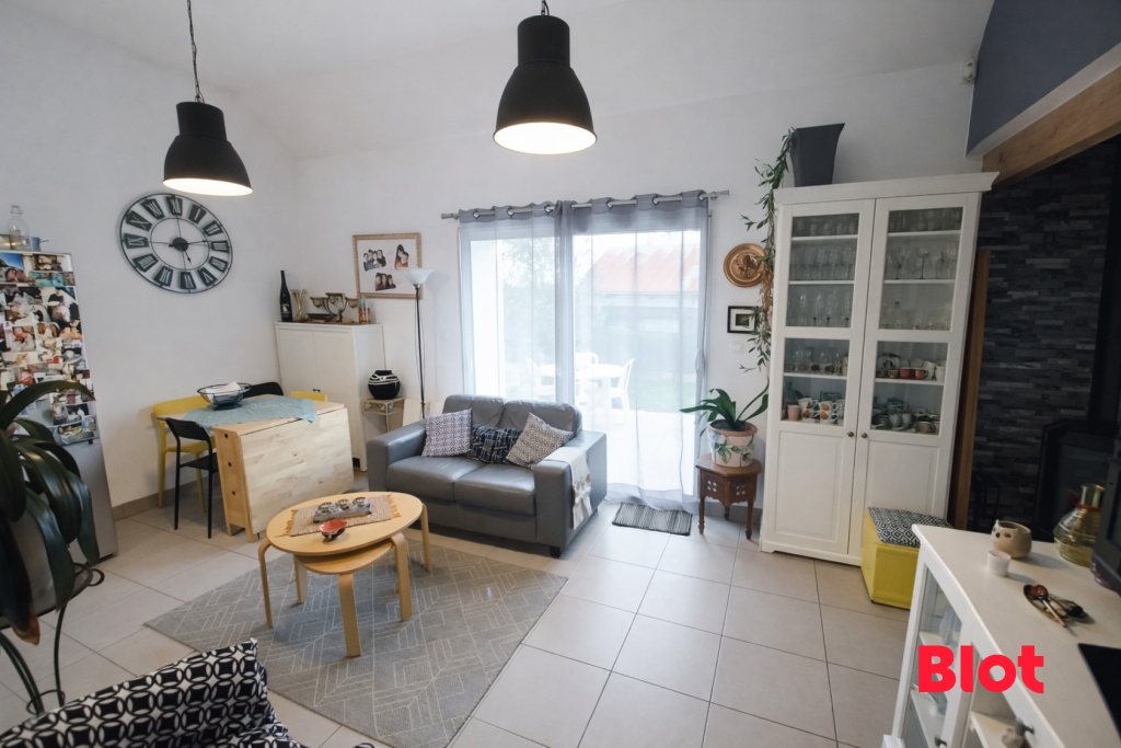La maison principale, d'environ 112 m², propose un agencement idéal pour une vie de famille confortable. Elle se compose de quatre chambres, dont une suite parentale au rez-de-chaussée, permettant une vie de plain-pied. Les espaces de vie sont lumineux et fonctionnels, alliant authenticité et confort contemporain.