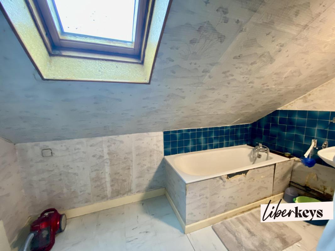 La maison se compose, au rez-de-chaussée, d'un salon, d'une salle à manger, d'une cuisine ainsi que d'une chambre. À l'étage, vous trouverez deux chambres supplémentaires, un débarras, une salle de bains et un WC. Une cave spacieuse complète ce bien, offrant un espace de stockage appréciable.