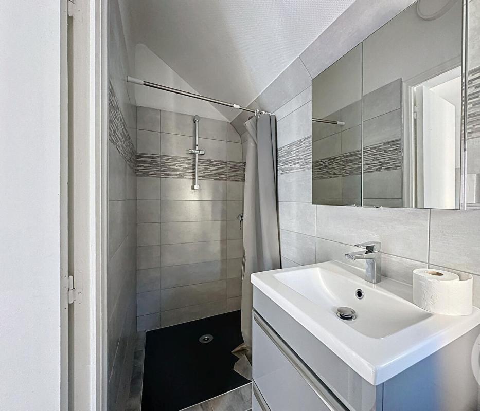 L'appartement tout en parquet se compose d'une entrée sur la cuisine équipée et aménagée, d'un séjour avec placard de 13m², d'une chambre de 9m² et d'une salle d'eau avec WC.