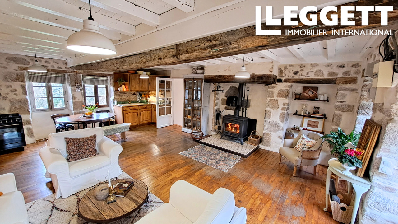 A42562REM87 - Charmante maison en pierre de deux chambres, dotée d'une salle de bains neuve, d'une cuisine ouverte sur le séjour et la salle à manger, d'une buanderie, d'un coin bureau et d'un grand cellier. Un escalier en chêne massif et un jardin arboré et généreux complètent ce bien polyvalent et plein de charme.