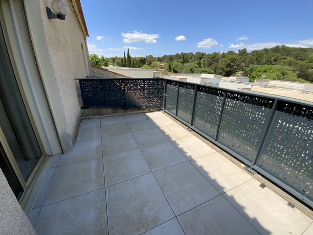 Nimes, Quartier résidenciel de Camplanier, maison provençale nichée sur les hauteurs, vue dégagée en pinède.