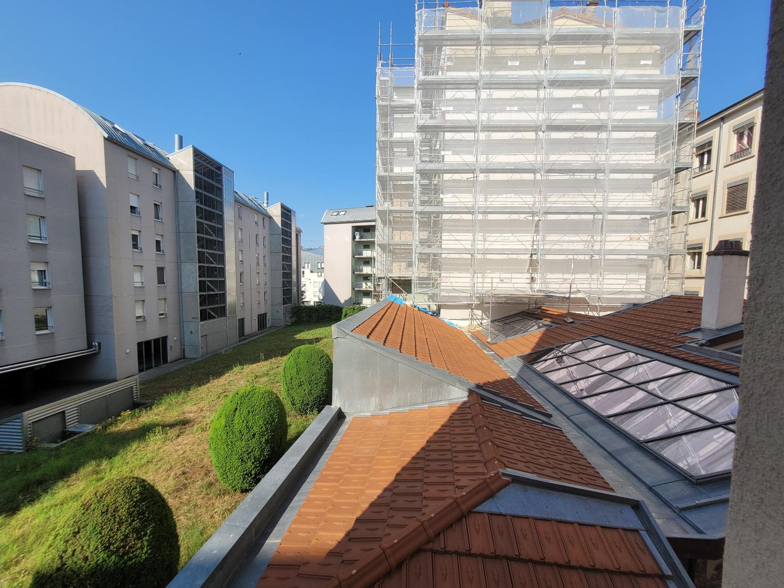 Le studio donne sur l'intérieur de la copropriété, sans aucun vis-à-vis, garantissant un environnement paisible, rare dans ce secteur central. La salle de bains est fonctionnelle et bien pensée.