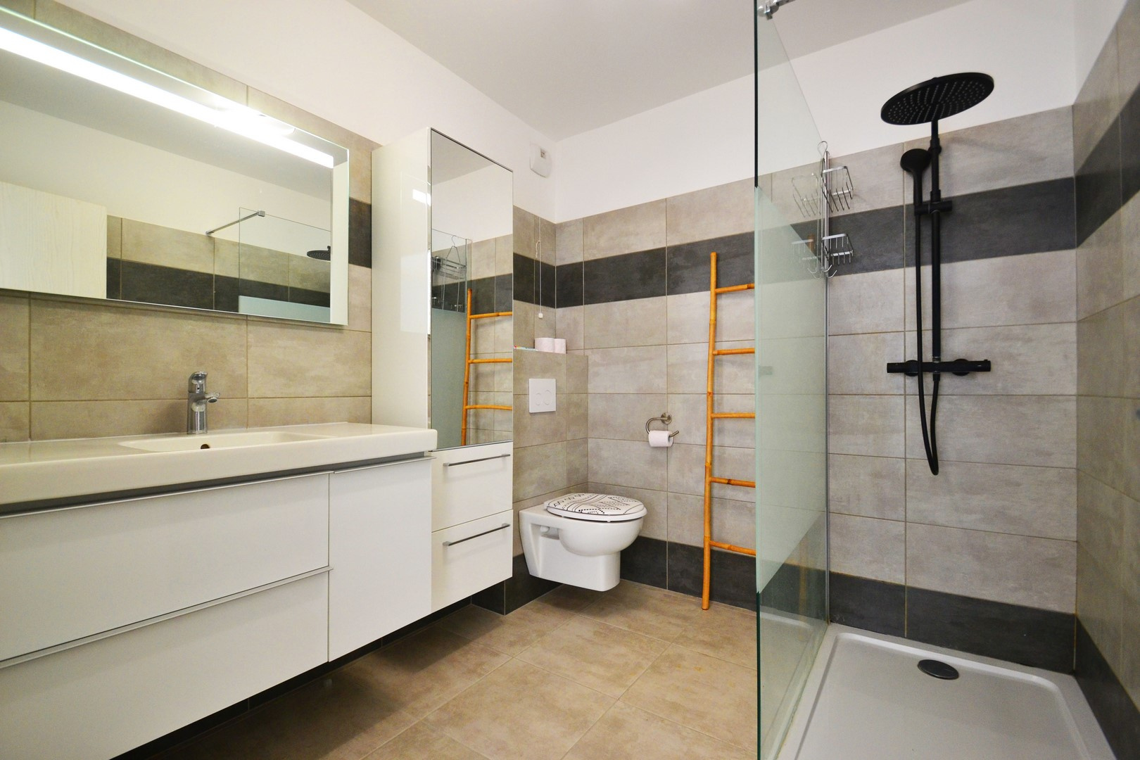 Confort optimal : Appartement entièrement climatisé, cuisine équipée moderne et nombreux rangements intégrés.