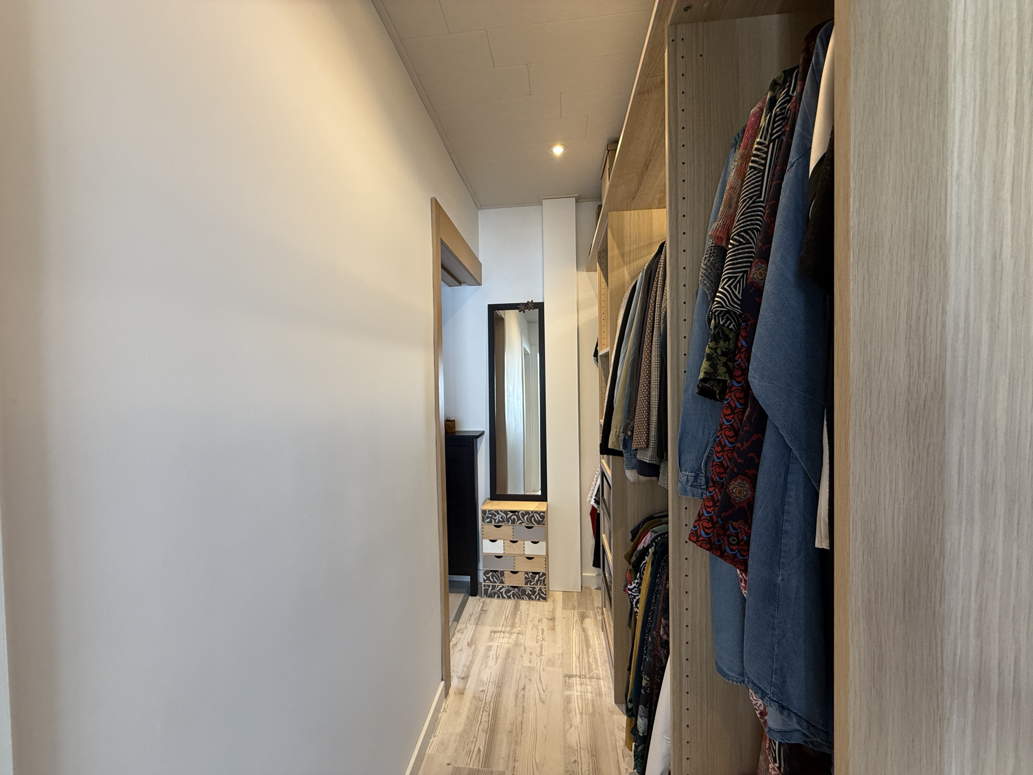 A l'étage, une grande pièce à vivre avec cuisine équipée ouverte sur salon séjour avec poêle à granulés avec accès à un balcon, une suite parentale comprenant une chambre, un dressing, une salle d'eau et une buanderie.
