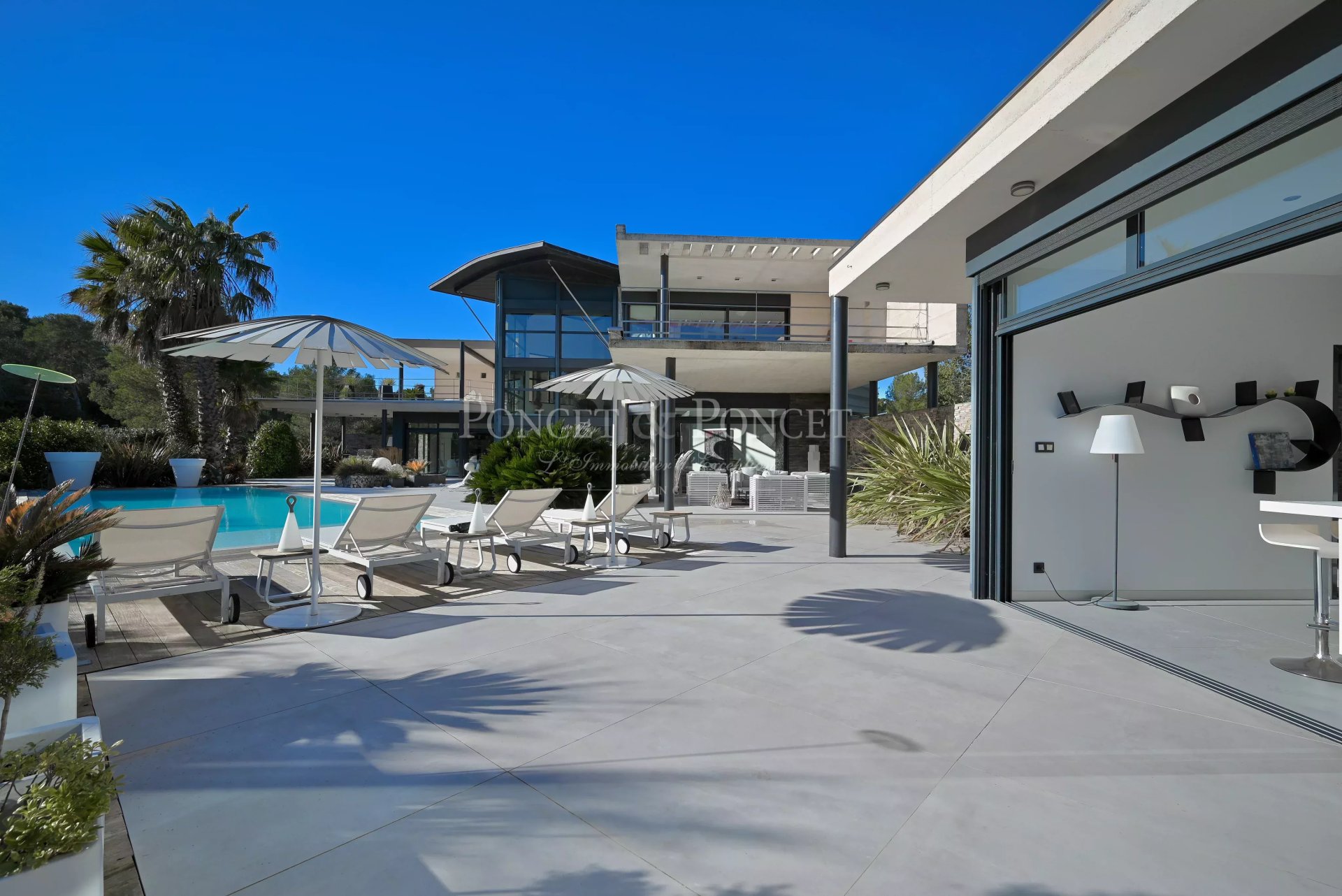 Nichée au cœur du prestigieux Domaine des Vautes, dans un environnement résidentiel d’un calme absolu, cette propriété d’architecture contemporaine redéfinit les codes du luxe. Érigée sur un parc paysager de 2 800 m² sans aucun vis-à-vis, elle offre une vue imprenable sur la pinède environnante.