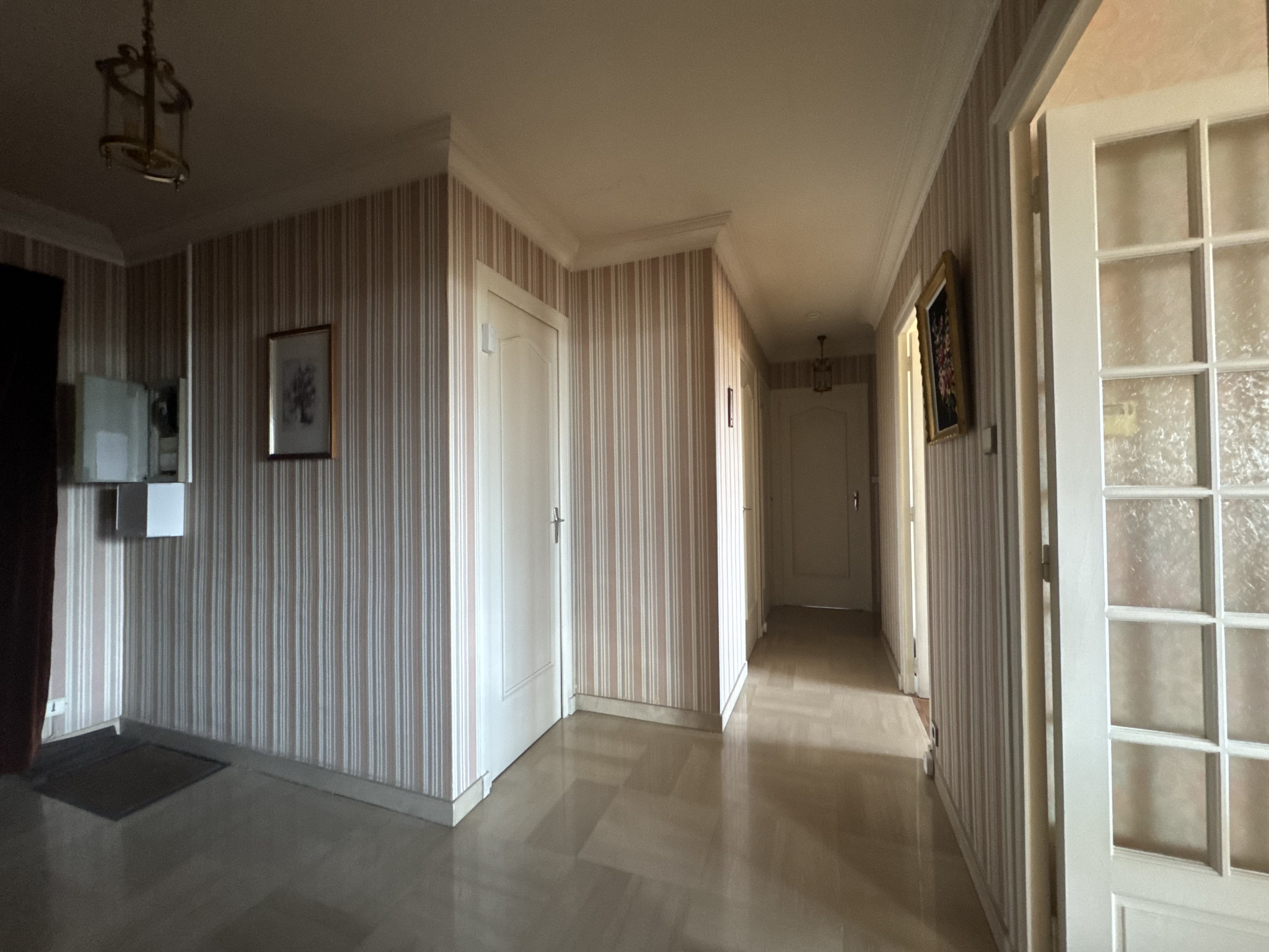 Un dégagement avec un grand placard et une salle d'eau.