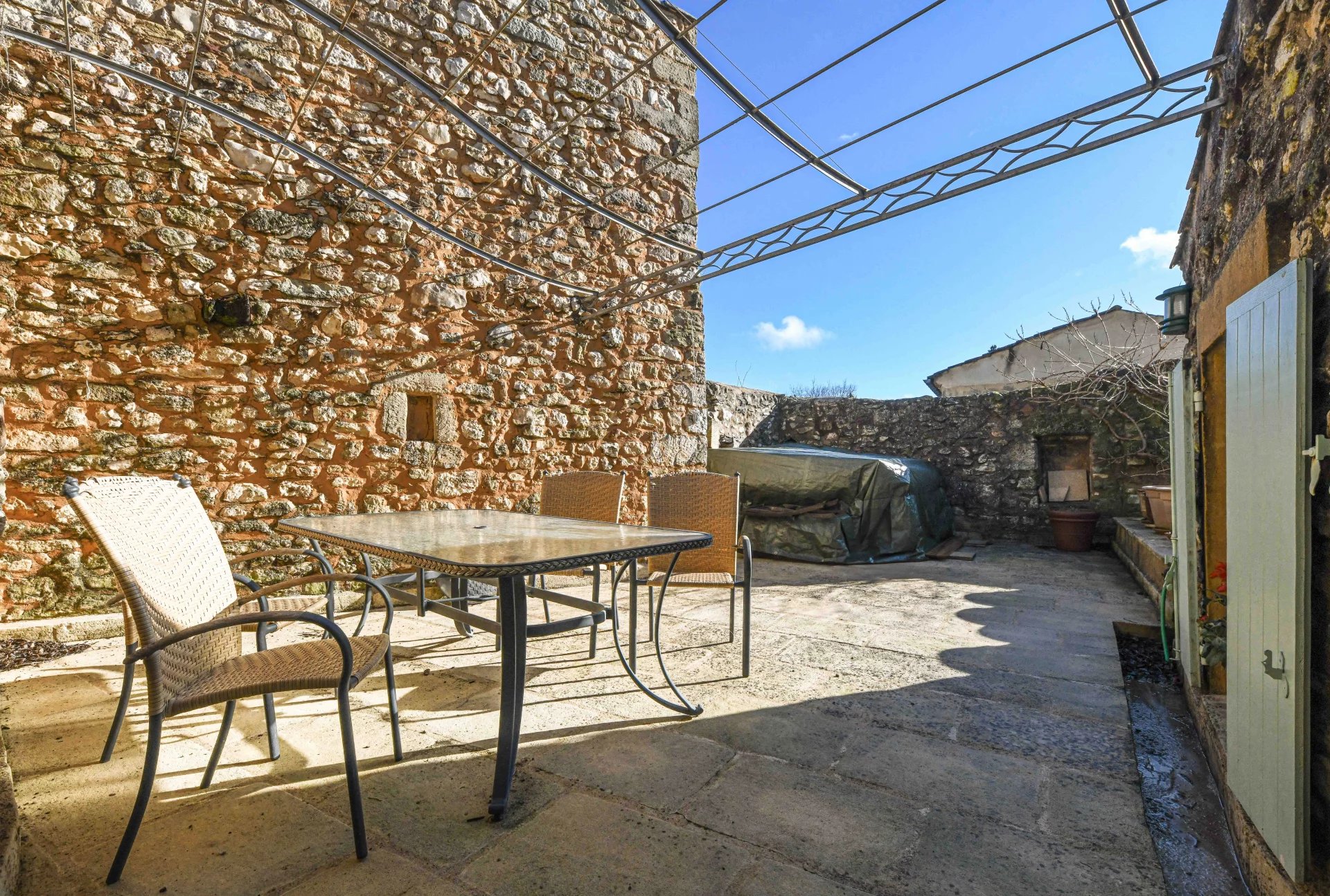 Terrasse, cour de 16 m², caves