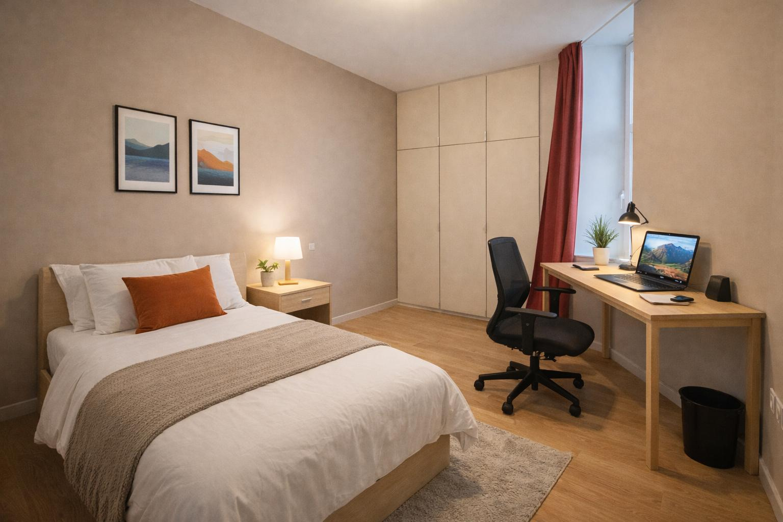 Il se compose d'un salon-sejour, une cuisine aménagée et équipée, deux chambres avec placards intégrés, une salle d'eau et toilette séparée.
