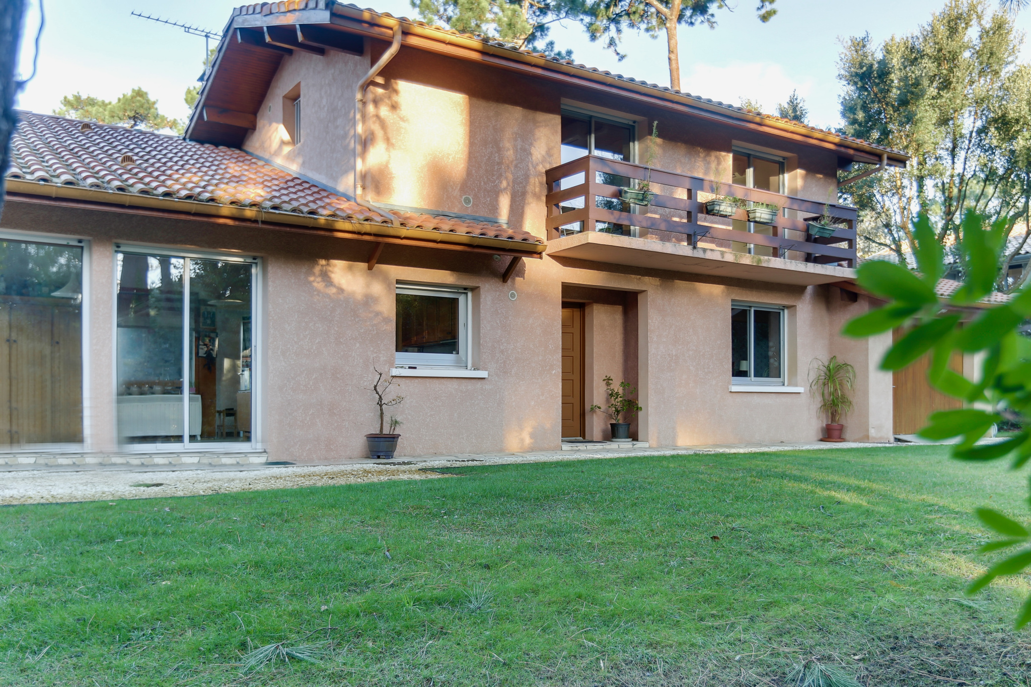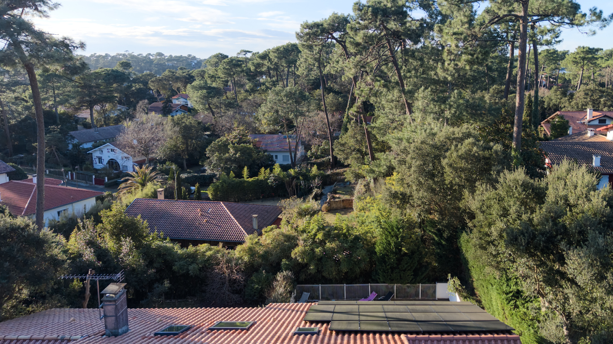Elle bénéficie d'un emplacement recherché à Hossegor : un quartier calme, résidentiel, à proximité immédiate du lac et du centre-ville. Egalement implantée sur un terrain dominant, elle profite de belles échappées sur la nature environnante et offre, depuis la terrasse comme depuis certaines pièces, de superbes couchers de soleil.