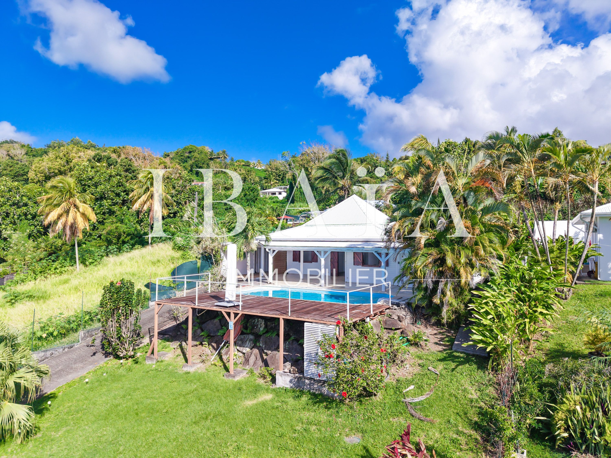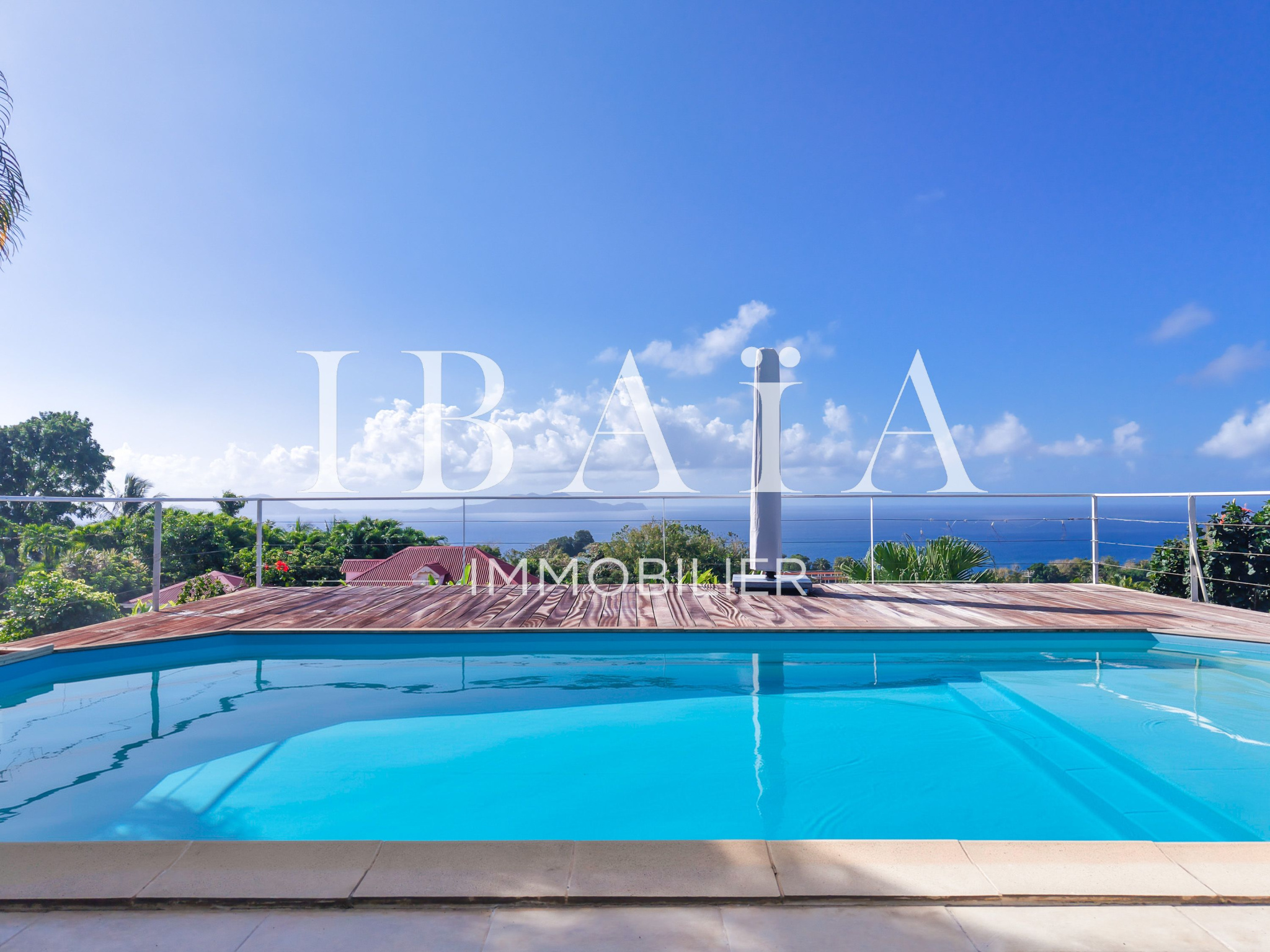 IBAÏA IMMOBILIER a le plaisir de vous présenter en exclusivité cette charmante villa avec piscine, offrant une très belle vue sur la mer et les Saintes.