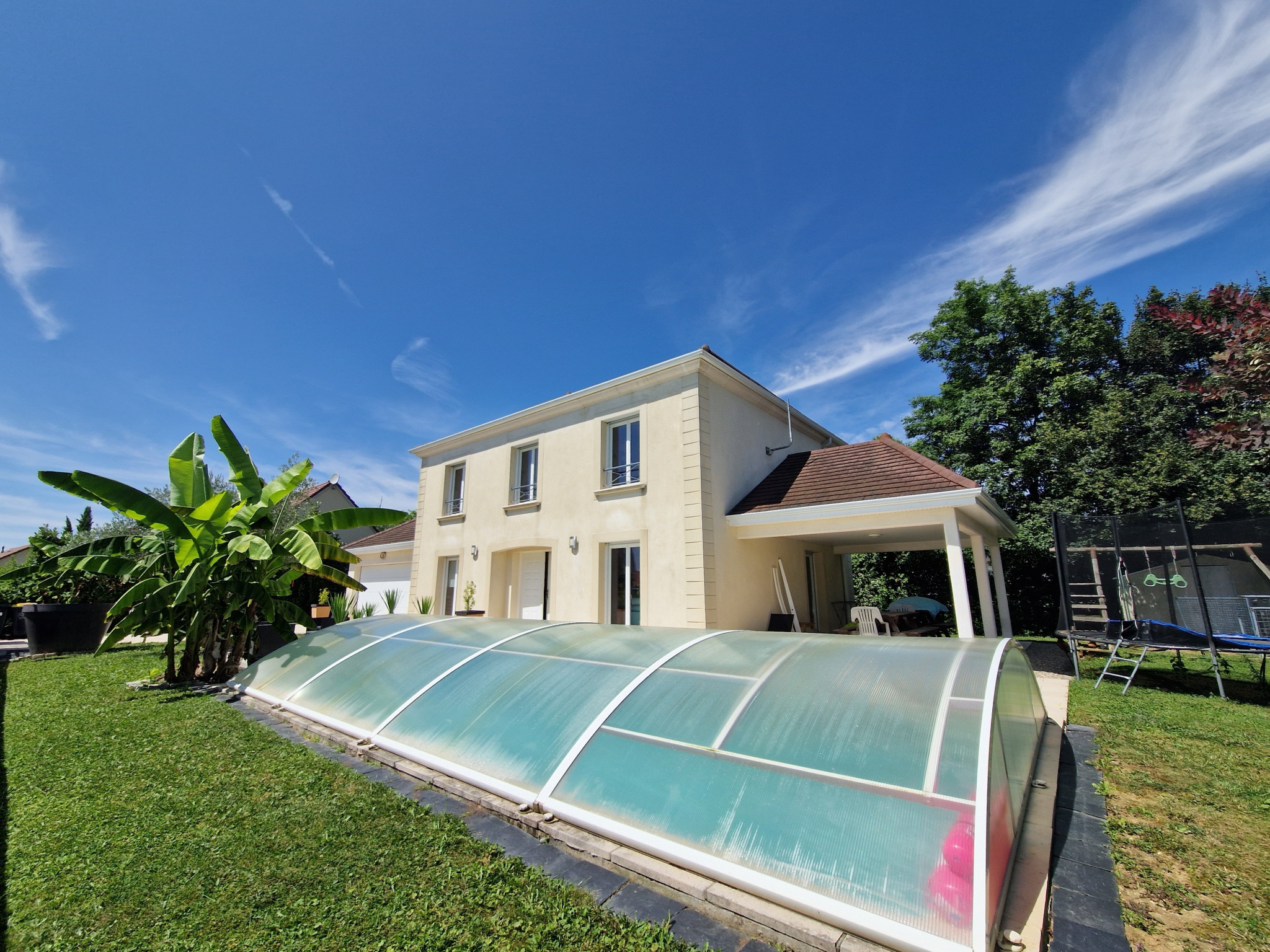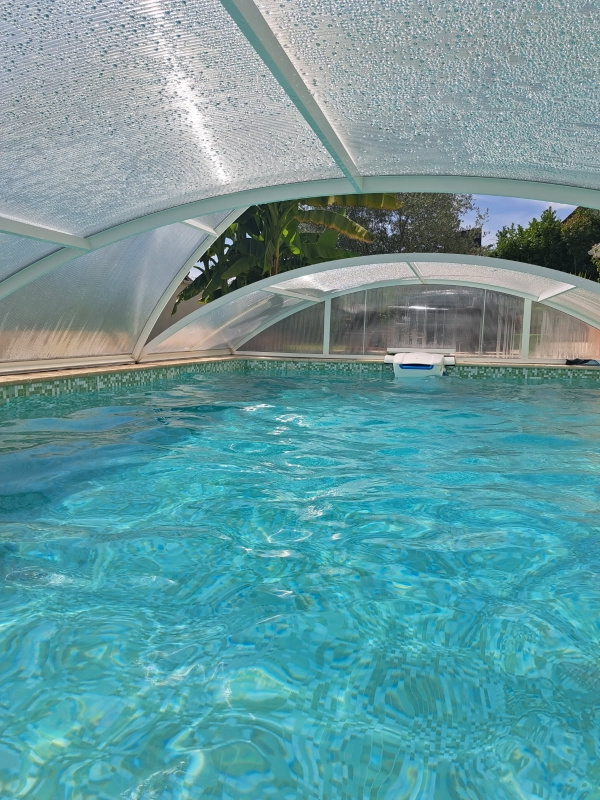 Au calme, agréable maison d'architecte (160 m2) sur terrain clos et arboré sans vis à vis d'environ 700 m2. Une entrée vous conduit dans une belle pièce de vie ouverte sur jolie cuisine équipée avec accès terrasse abritée (50 m2), une chambre avec rangement et salle de douches à l'italienne, un sanitaire. A l'étage : une spacieuse mezzanine, une suite parentale (dressing et salle de douches), deux grandes chambres avec rangements, une salle de bains et un sanitaire. Depuis la cuisine vous aurez accès à la buanderie et au garage (40 m2) Un abri jardin ainsi qu'une piscine couverte complète ce bien. Chauffage pompe à chaleur (au sol).Beaux volumes et BELLES PRESTATIONS. Les honoraires sont à la charge du vendeur. CLASSE ENERGIE. A - CLASSE CLIMAT.A. Le montant des dépenses annuelles d'énergie entre 900 EUR et 1250 EUR. Prix moyens des énergies indexés au 01/01/2022 (abonnements compris). Les informations sur les risques auxquels ce bien est exposé sont disponibles sur le site Géorisques www.georisques.gouv.fr