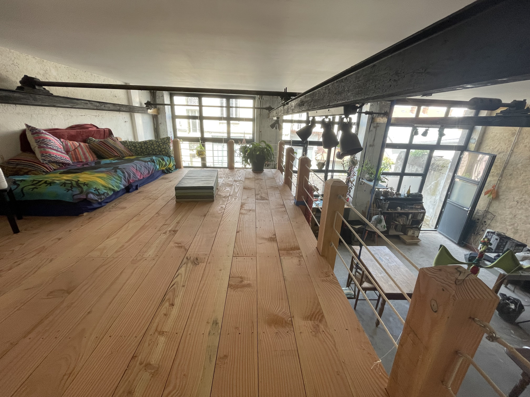 Très beau Loft/Atelier de 48.50 m2 avec une petite terrasse et trois caves. Situé dans un secteur très calme et proche du Cours Fauriel. Très belle luminosité grace aux menuiseries aluminium (triple vitrage d' excellente qualité) refaites à neuf récemment. A finir de réhabiliter à son goût mais avec une base très saine. Plafond refait à neuf ,mezzanine en bois récente et électricité refaite. Au rez de chaussé surélevé d'un très joli bâtiment de style art nouveau. Classé en atelier mais avec une démarche facile pour transformer en habitation. Idéal pour un artiste ou un étudiant.