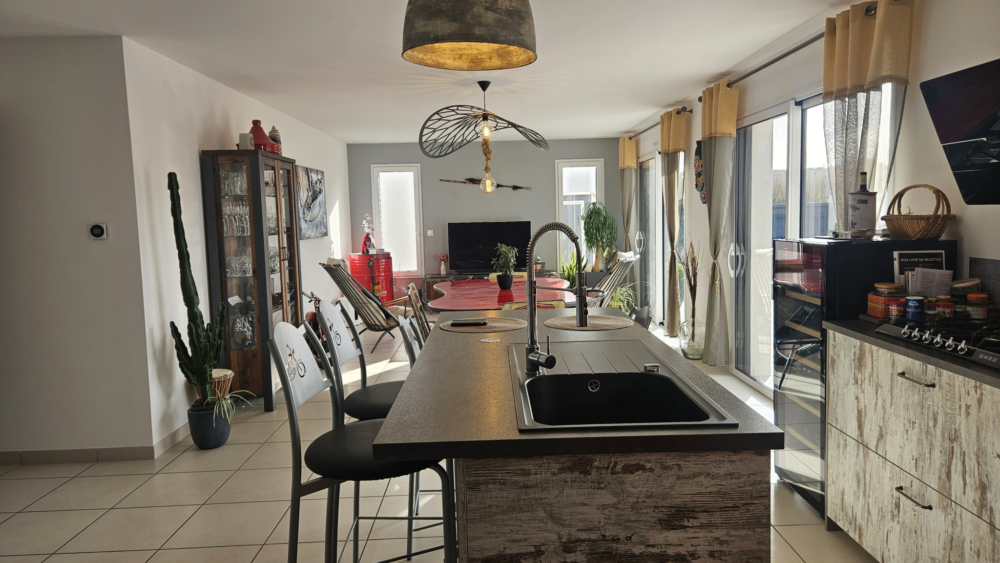 UNIQUEMENT CHEZ MONTS IMMOBILIER ! À 300 mètres du bourg de NOTRE DAME DE MONTS et à 1,2 km des plages, belle maison récente de 2021, de plain-pied, HABITABLE DE SUITE ! La surface habitable du bien est de 99,87 m2, très bien agencé, sans aucune perte de place. Il comprend: un lumineux salon-séjour de 38,46 m2 avec une cuisine ouverte aménagée et équipée donnant sur une terrasse orientée OUEST, trois chambres, dressing, deux salles de douches et deux WC. Attenant et communiquant à la maison un vaste garage de 38,96 m2, devant le garage 2 emplacements de parking. MONTS IMMOBILIER : UN ENGAGEMENT DANS LA CONFIANCE