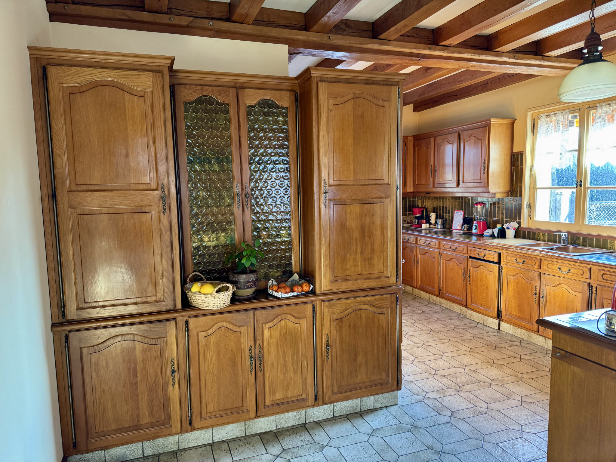 EXTÉRIEURS : véranda, GARAGE DOUBLE avec grenier, superbe CAVE VOÛTÉE, chaufferie, PUITS avec pompe et une terrasse de 15/20 m2.