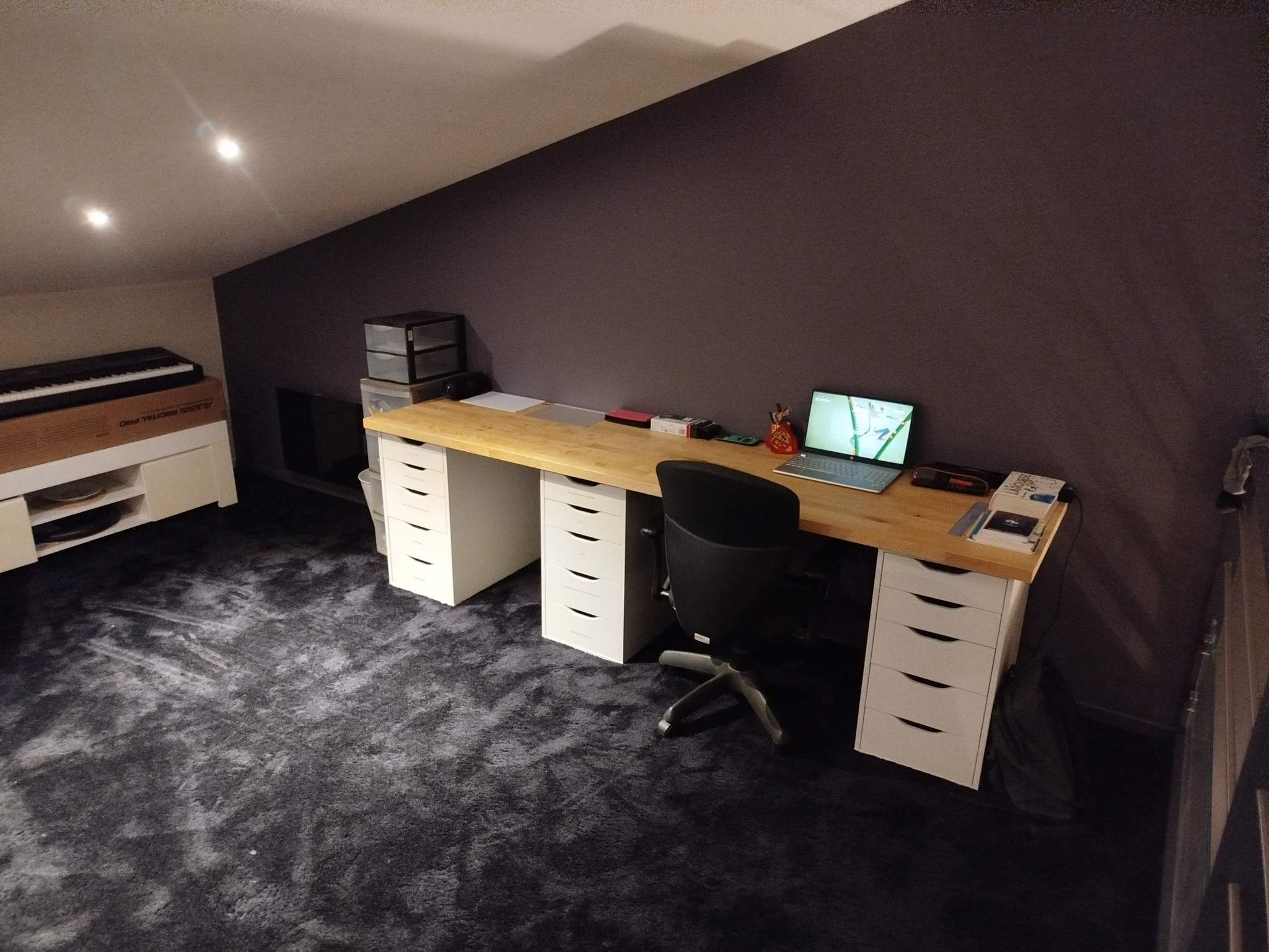 A l'étage : une mezzanine idéale pour un bureau ou une salle de jeux, une salle d'eau avec wc et une chambre.