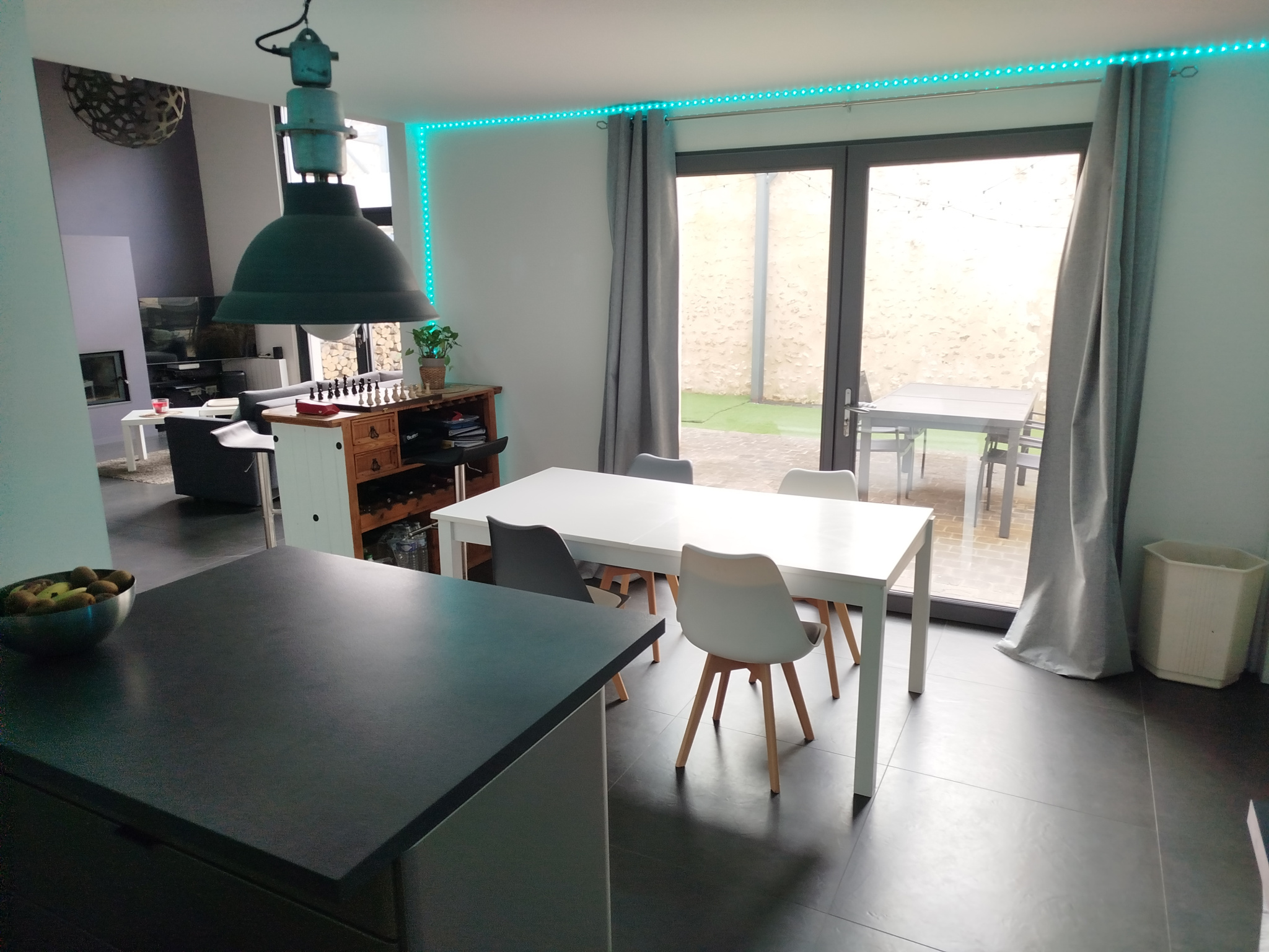 Au rez de chaussée : une entrée donnant sur une pièce de vie de 46m2 avec cheminée, une cuisine meublée et entièrement équipée, deux chambres dont une avec salle d'eau privative.