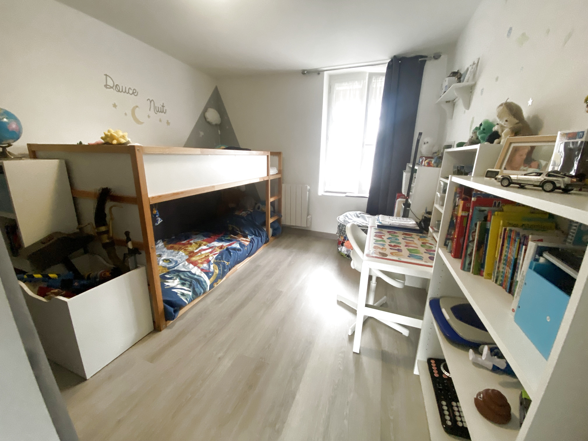 A l'étage : grande pièce palière, deux chambres, une salle d'eau avec WC, et une pièce à aménagée de 25m2.