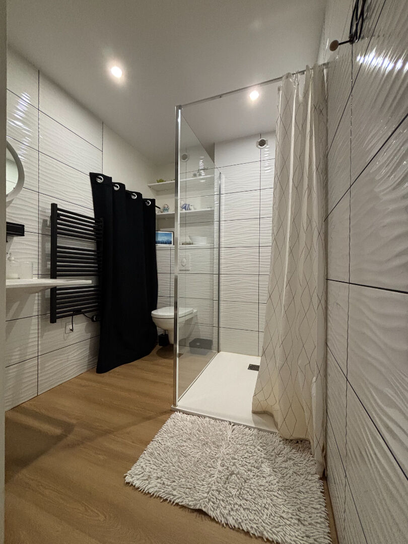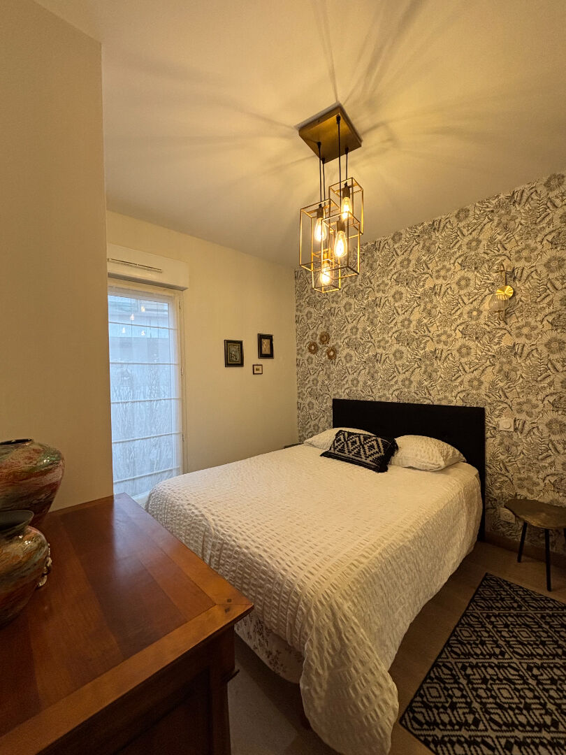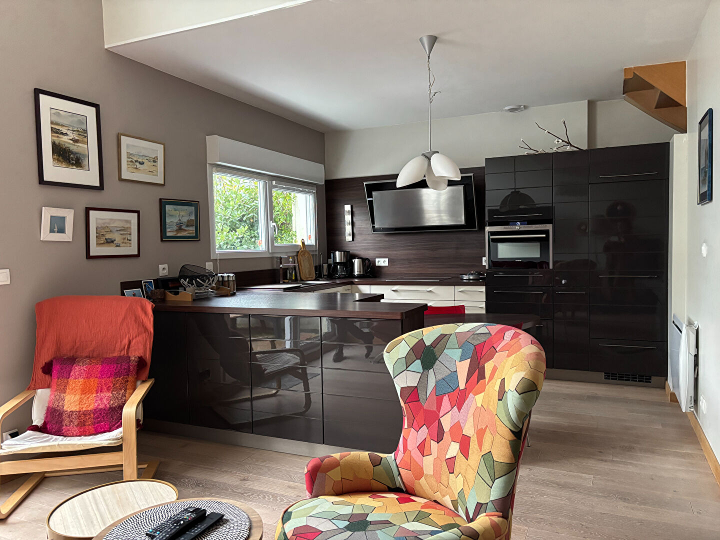 Le rez-de-chaussée propose également une chambre avec salle d'eau, permettant une vraie vie de plain-pied, ainsi qu'un garage. À l'étage, vous trouverez un bureau en mezzanine donnant accès à une terrasse, une seconde chambre avec salle d'eau attenante et un dressing, offrant confort et intimité. Côté stationnement, la maison dispose de deux places de parking supplémentaires.