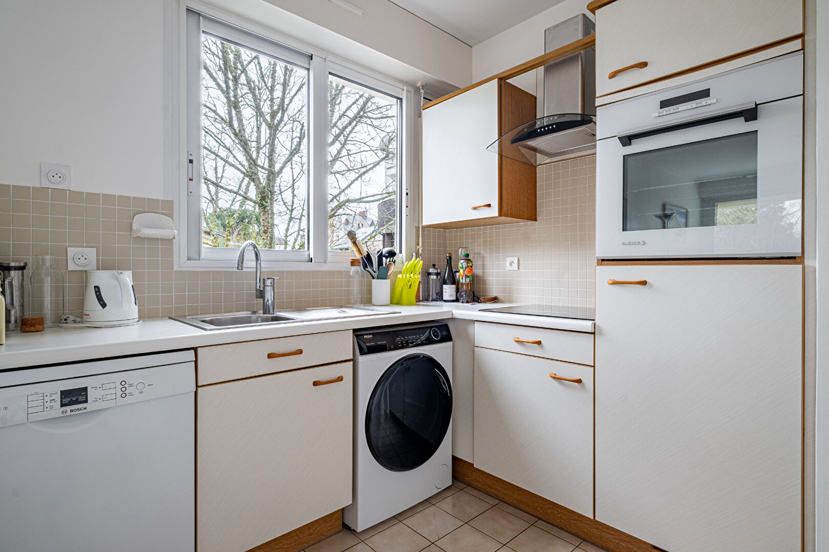 1 cuisine ouverte aménagée et équipée.