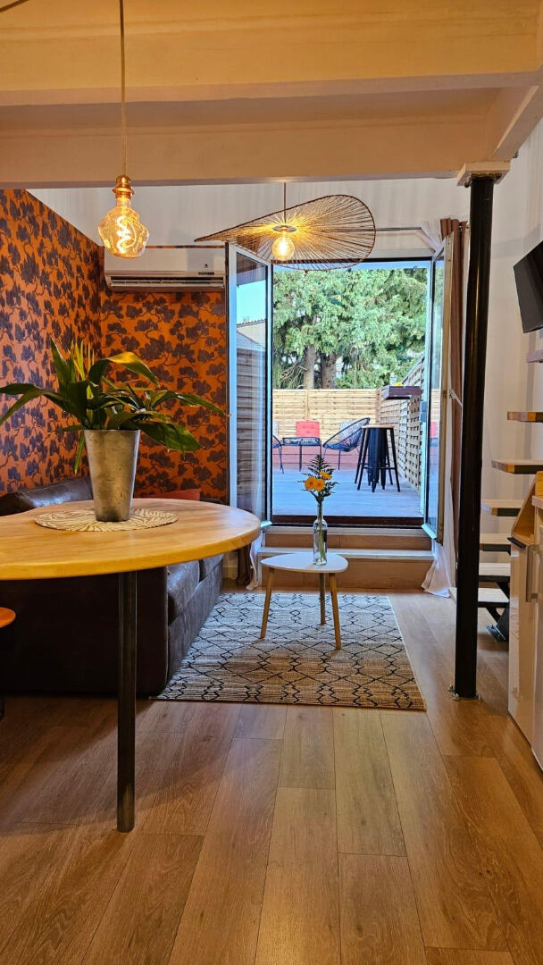 L'appartement se compose d'une pièce de vie lumineuse de 16 m², sublimée par une cuisine ouverte entièrement équipée, aux prestations haut de gamme et aux agencements sur mesure. Les matériaux ont été soigneusement choisis, mêlant bois exotique, ferronnerie d'art et finitions de qualité, conférant au lieu une atmosphère chaleureuse et unique.