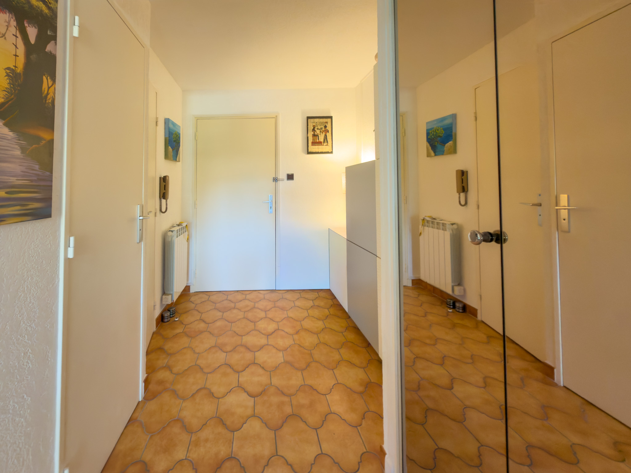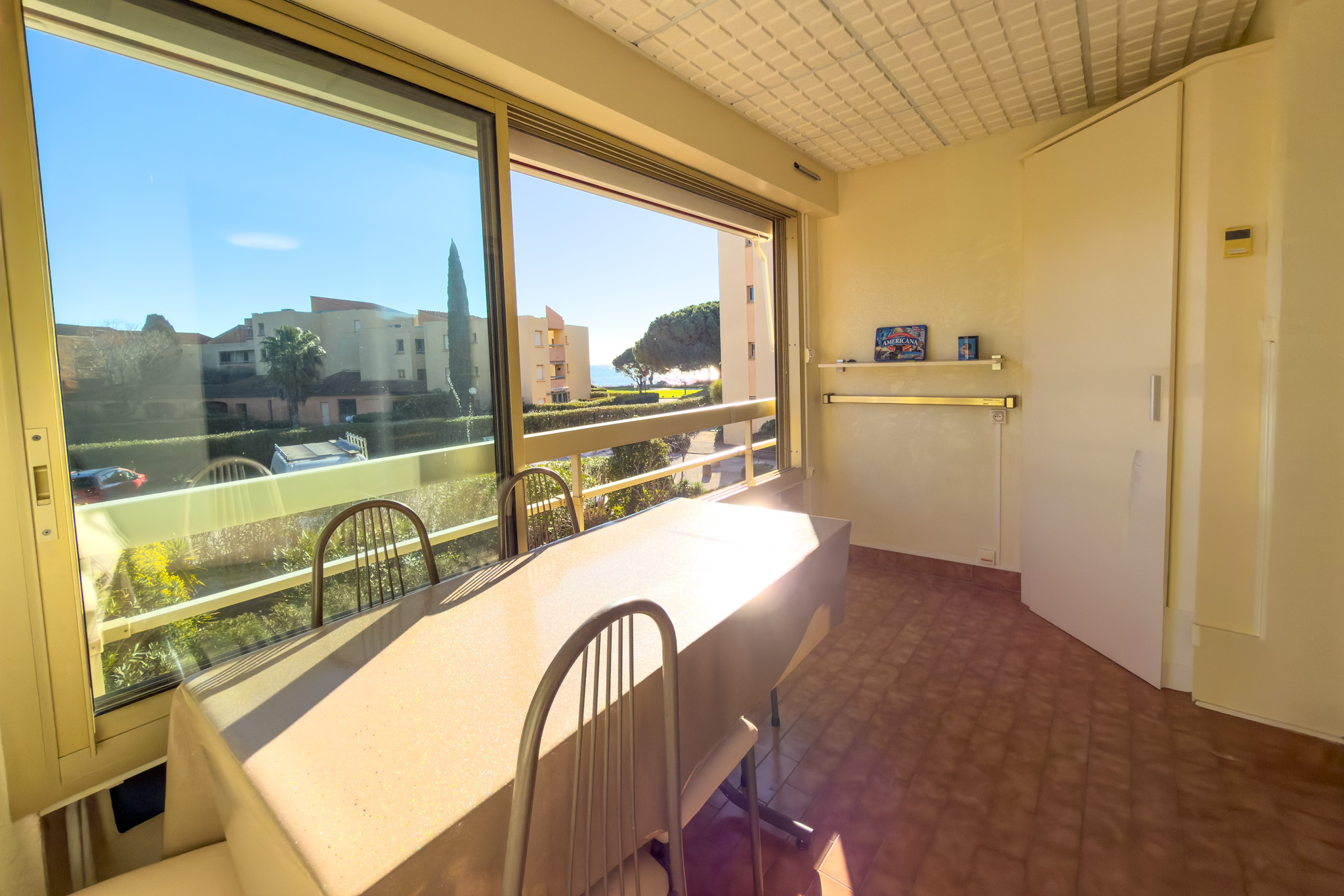 Plage de l'Argentière à La Londe : accès direct à la mer et aperçu mer depuis la loggia, studio cabine en parfait état. En résidence sécurisée recherchée, vous y trouvez un séjour avec kitchenette, une loggia, une cabine, une salle d'eau et un wc indépendant. Stationnement privé et local à vélos dans la résidence.