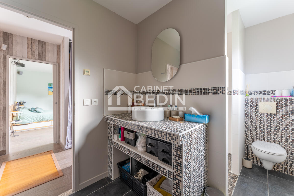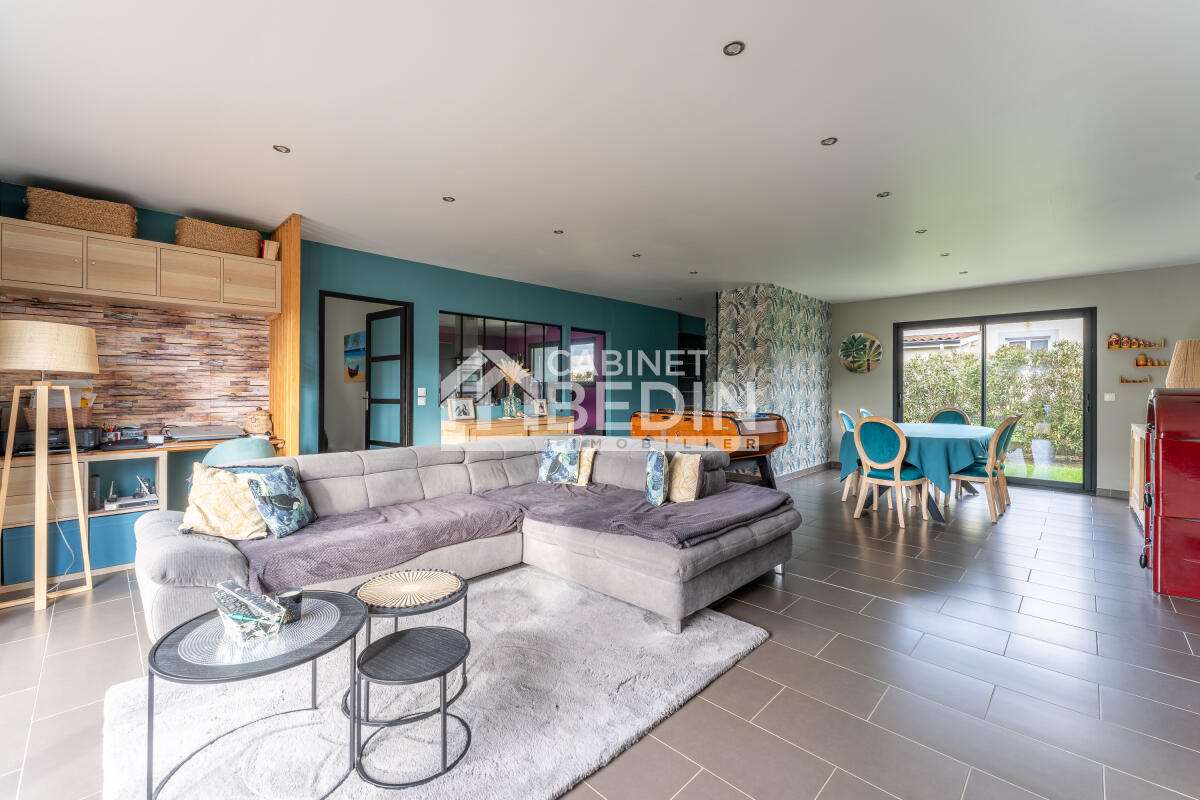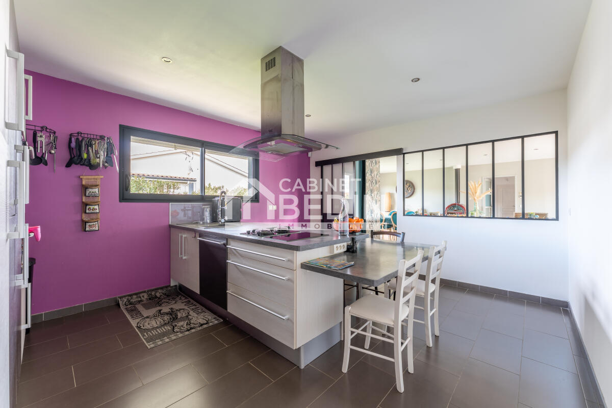 Secteur de Créon. Située dans un secteur recherché, vous découvrirez cette vaste maison alliant modernité, espace et tranquillité. Idéale pour une vie familiale confortable, elle vous offre une vaste pièce de vie dotée d?un salon et d?une salle-à-manger, une cuisine avec îlot central, 4 chambres dont une spacieuse suite parentale disposant d'un accès direct à la terrasse et à la piscine. Une salle de sport, une buanderie ainsi qu'une seconde salle de douche et bain complètent ce bien. Côté extérieur, vous profiterez d?un jardin d?environ 1300m² doté d'un espace piscine, d'un pool house, d'une terrasse et d'une cuisine d'été. Un abri couvert pour 2 véhicules facilite le stationnement au quotidien.