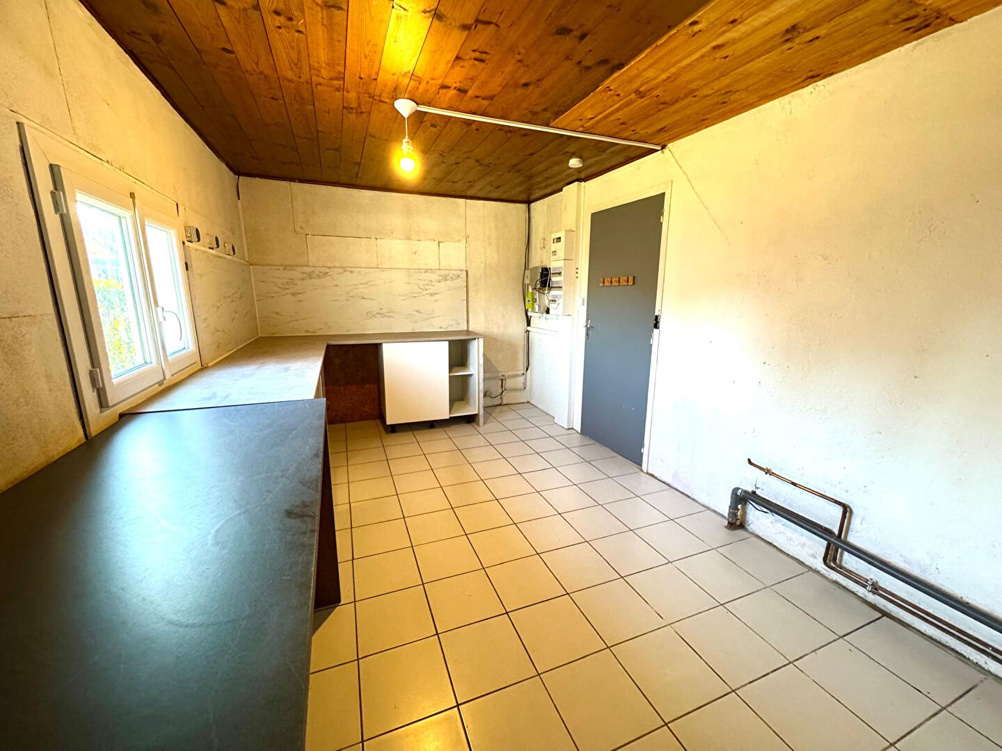 Le bien se compose, au rez-de-chaussée d'une entrée, d'une cuisine donnant accès à une arrière-cuisine, d'un séjour, d'une salle d'eau avec wc et deux chambres.