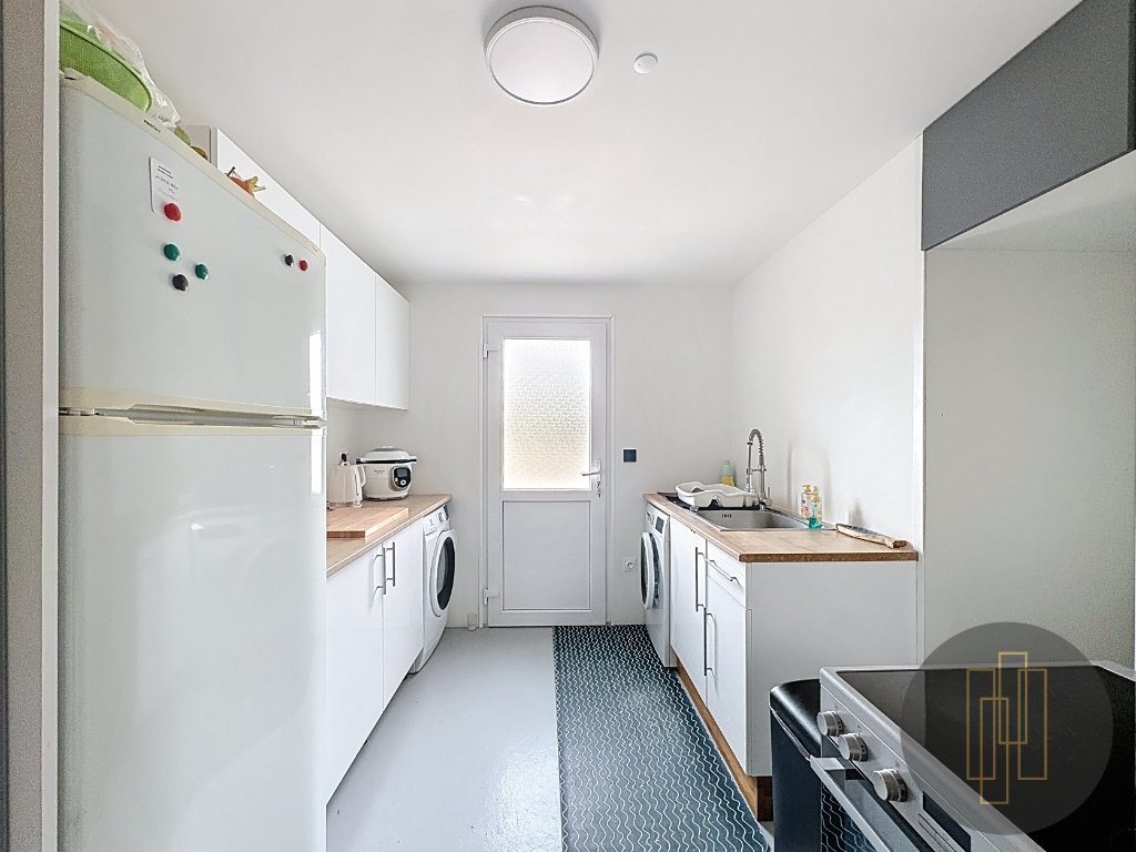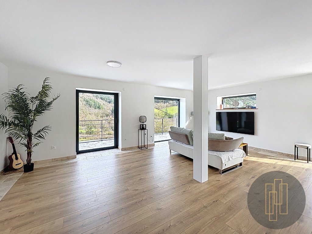 L'entrée mène à un espace de vie réunissant salon, salle à manger et cuisine ouverte, offrant de beaux volumes de vie .