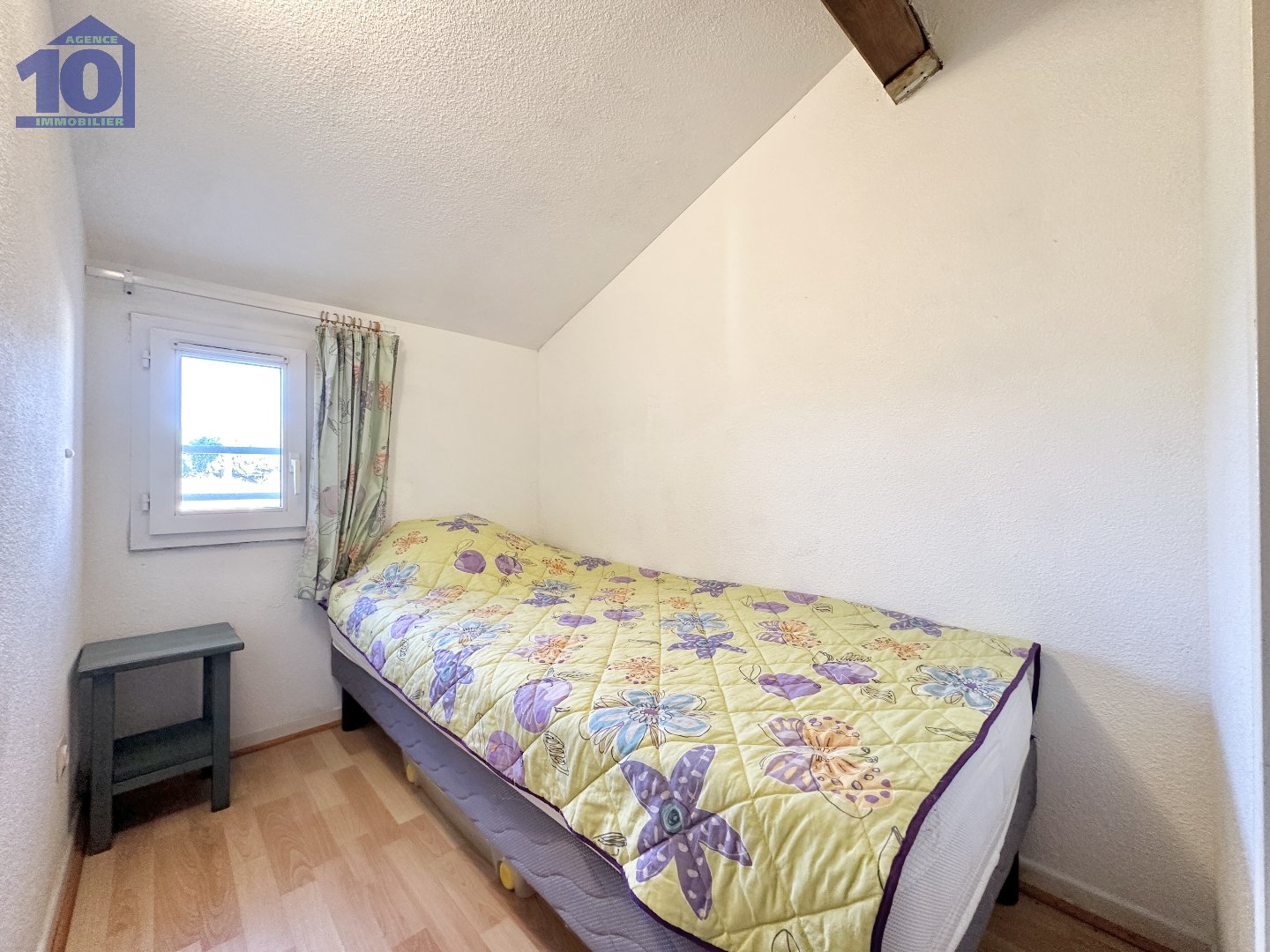 À l'étage, l'espace nuit se compose d'une chambre adulte, d'une chambre enfant de type cabine, et d'une salle d'eau avec douche, fenêtre et emplacement pour machine à laver.