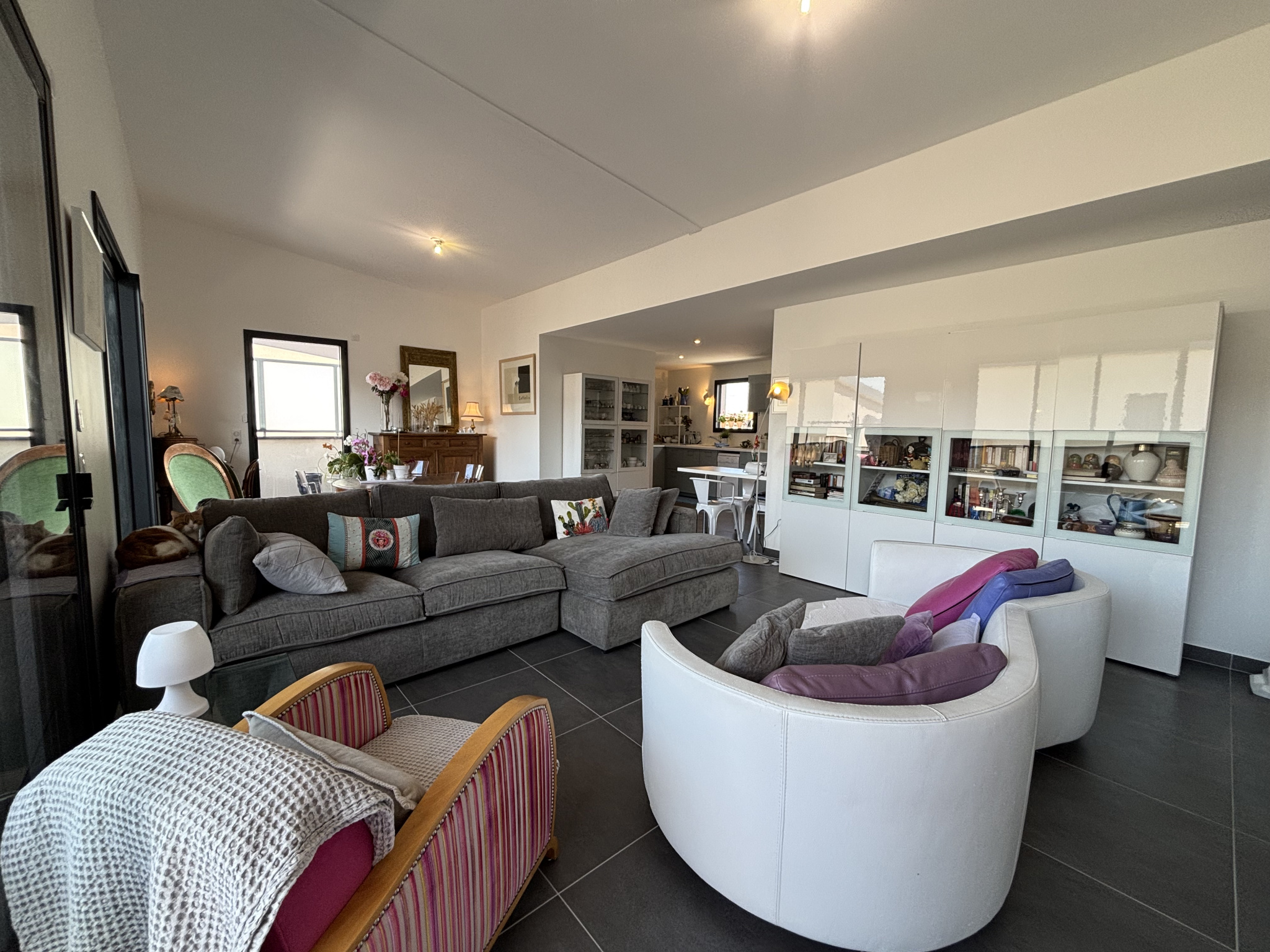 Très joliment et soigneusement investi par des équipements de qualité, ce bien propose un superbe séjour-salon de 36 m2 ouvert sur terrasses, une cuisine aménagée et équipée ouverte de 10 m2, un cellier, deux très belles chambres dont une suite parentale avec salle d'eau et dressing de 20 m2, des placards, une salle de bains et W.C séparés.