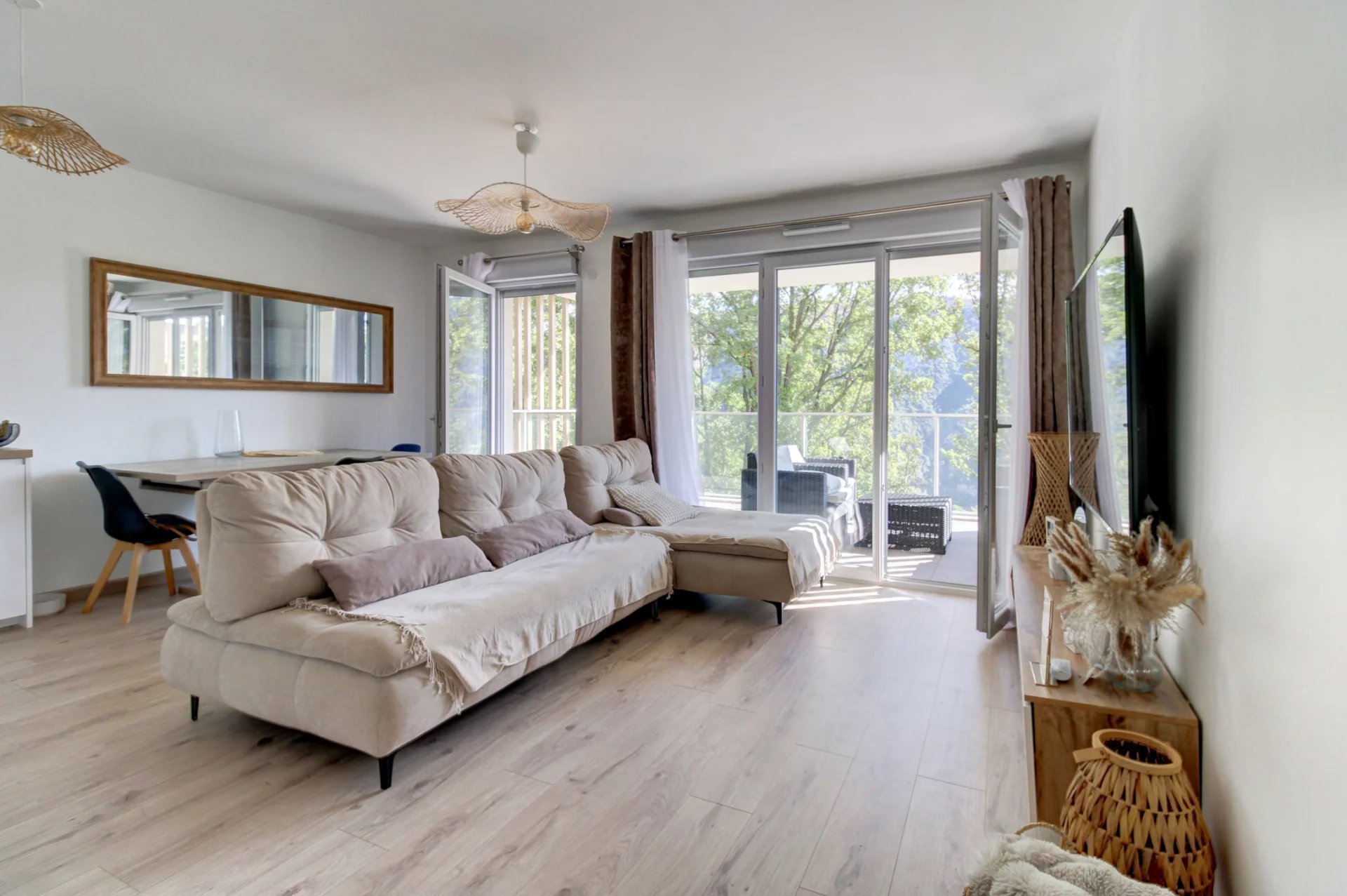 Dès l’entrée, vous serez séduit par les beaux volumes et la luminosité des pièces. Le séjour s’ouvre sur une cuisine américaine aménagée et entièrement équipée, offrant un espace convivial, idéal pour recevoir. Le tout donne accès à une agréable terrasse de 13,90m² avec une vue dégagée sur la verdure.