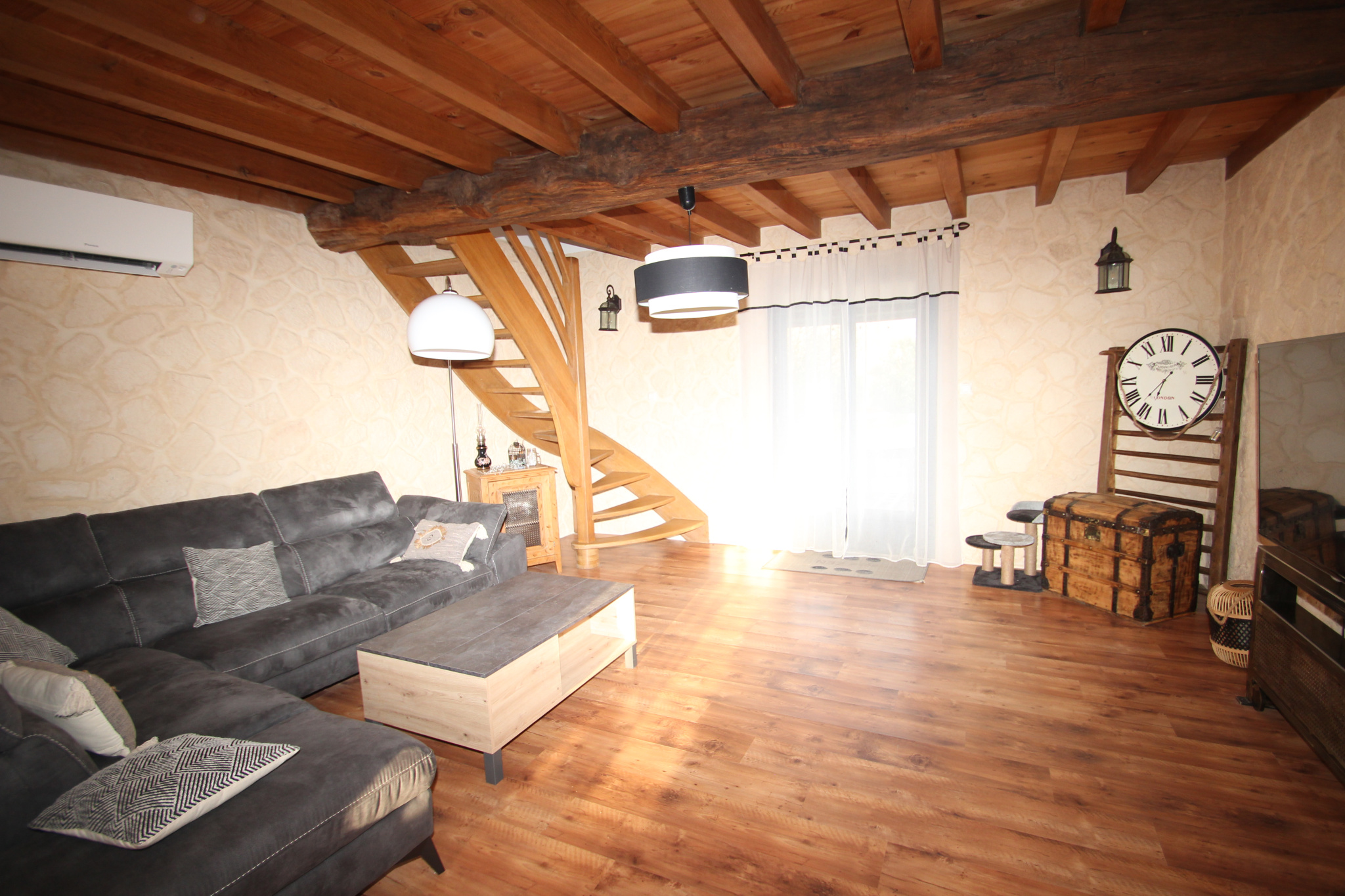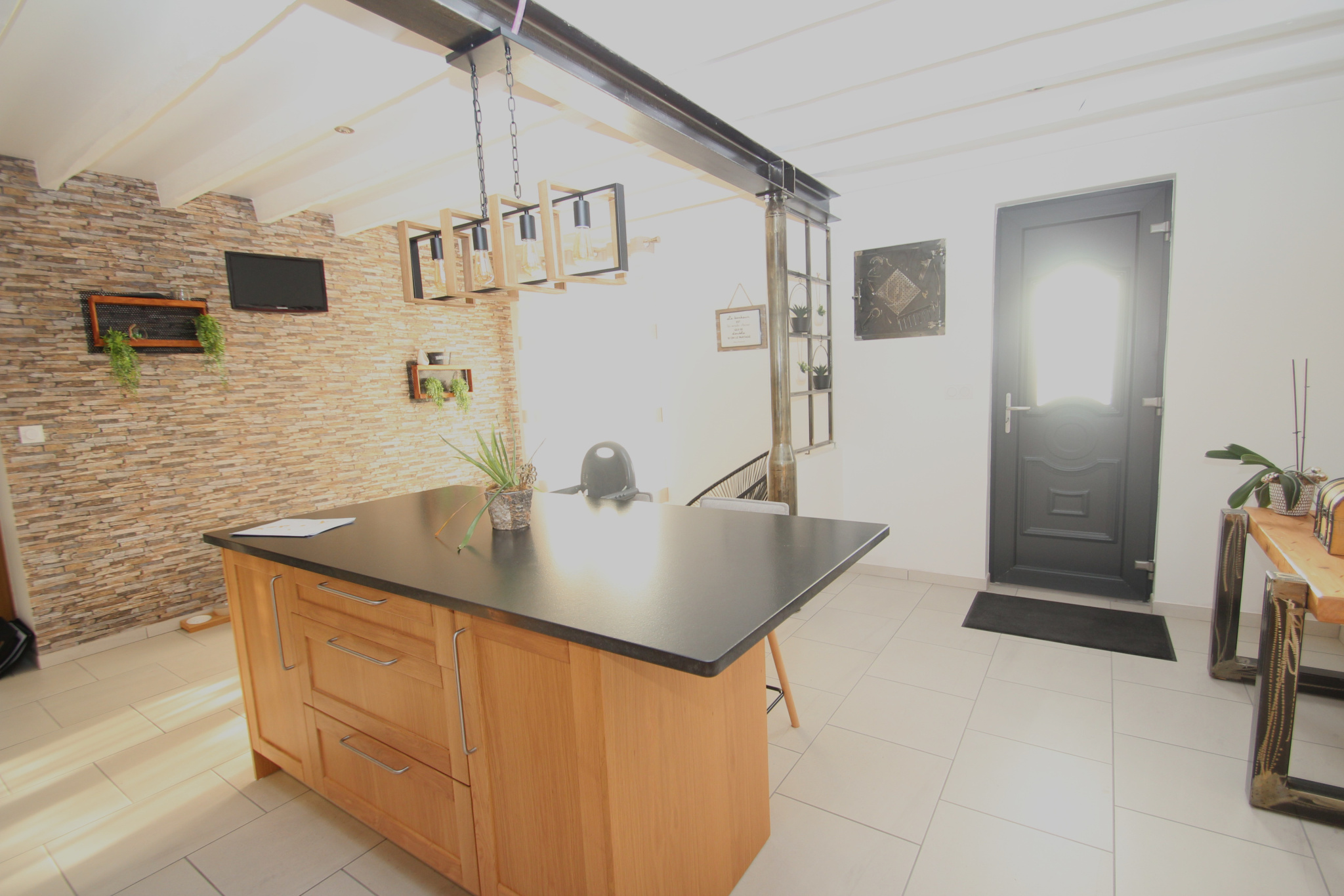 SUR L'AXE DECIZE - BOURBON LANCY, beaux volumes pour cette maison entièrement rénovée avec goût, comprenant en rez-de-chaussée, entrée, cuisine aménagée et équipée, cellier, séjour/salle à manger de 55 m2 avec insert, bureau, salle d'eau, wc, chambre, dressing et grande cuisine d'été aménagée et équipée avec accès direct sur terrasse avec piscine chauffée 7,5m x 3,5m.