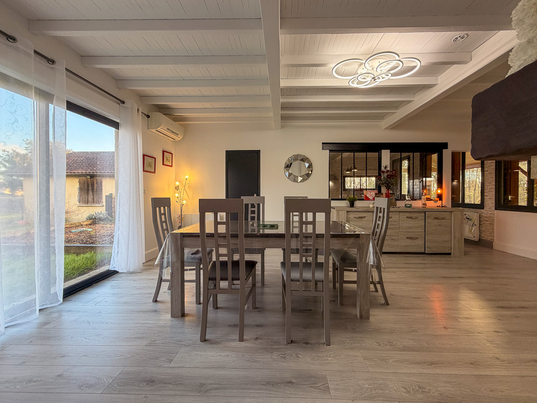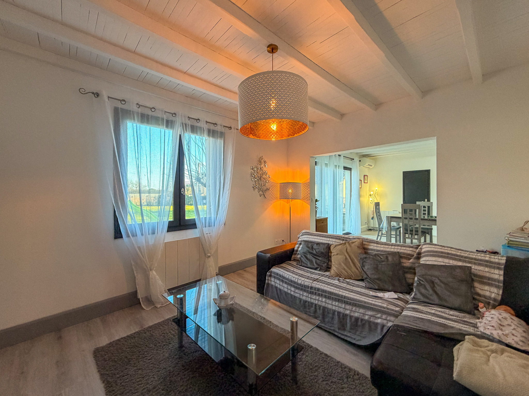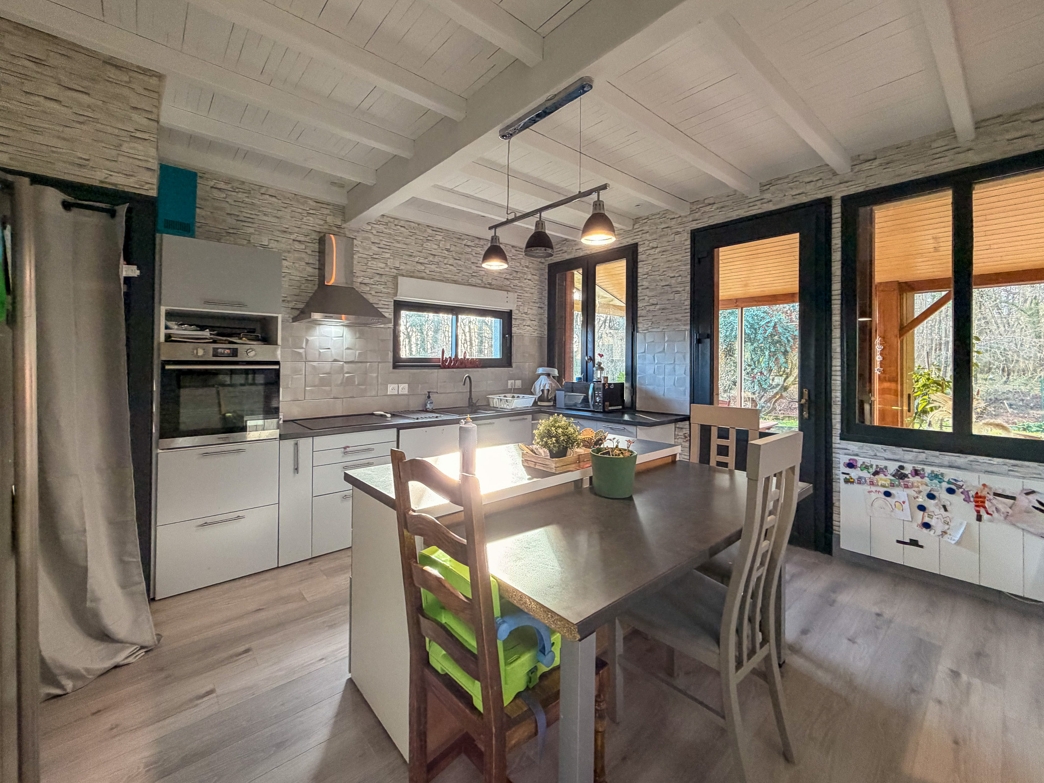 Dès l'entrée, la maison séduit par ses volumes bien répartis et sa luminosité. Le séjour, prolongé par une véranda tournée vers le jardin, constitue un véritable espace de vie supplémentaire, agréable en toute saison. La cuisine, indépendante et fonctionnelle, s'intègre harmonieusement à l'ensemble et permet une organisation fluide du quotidien.