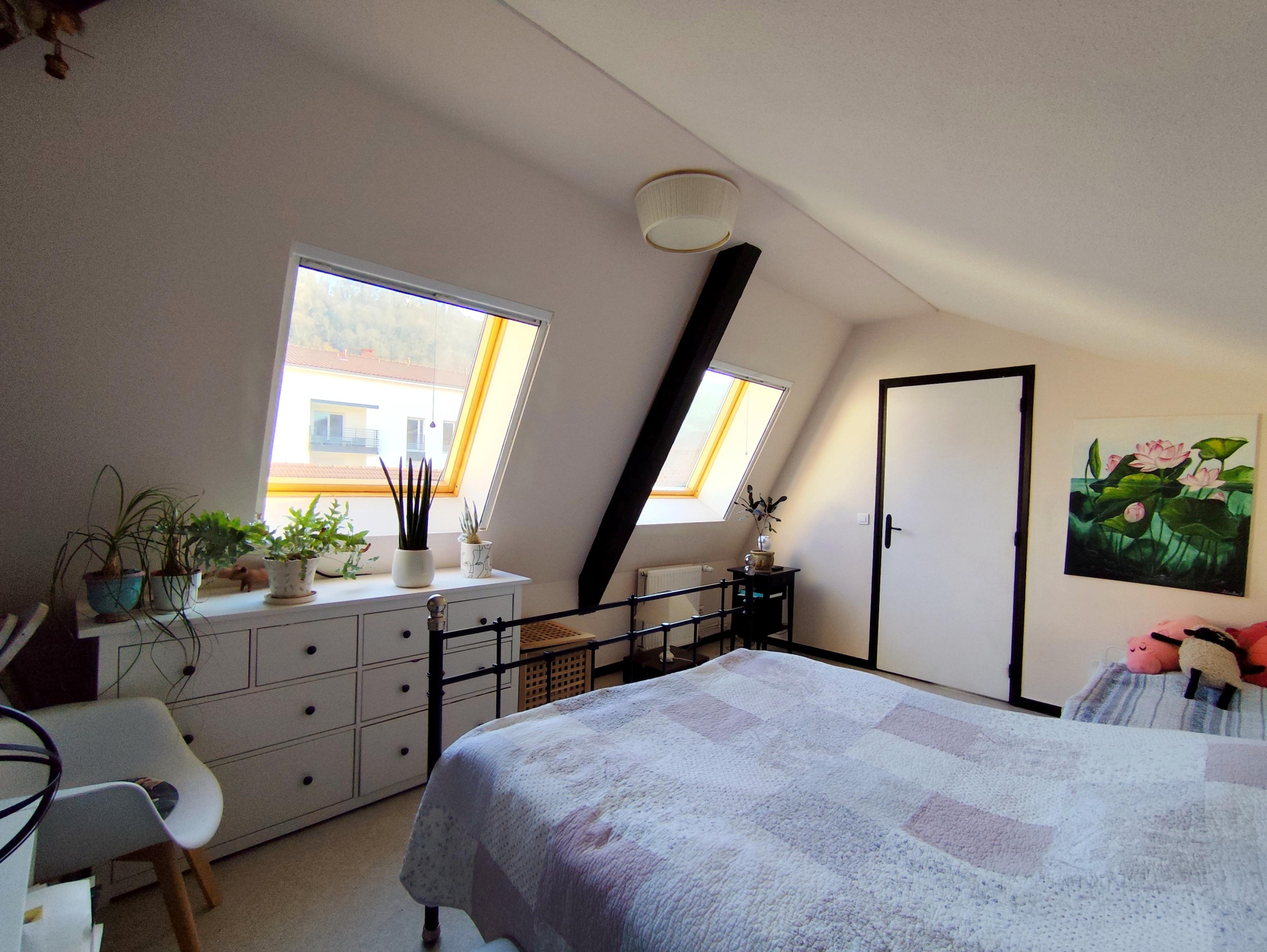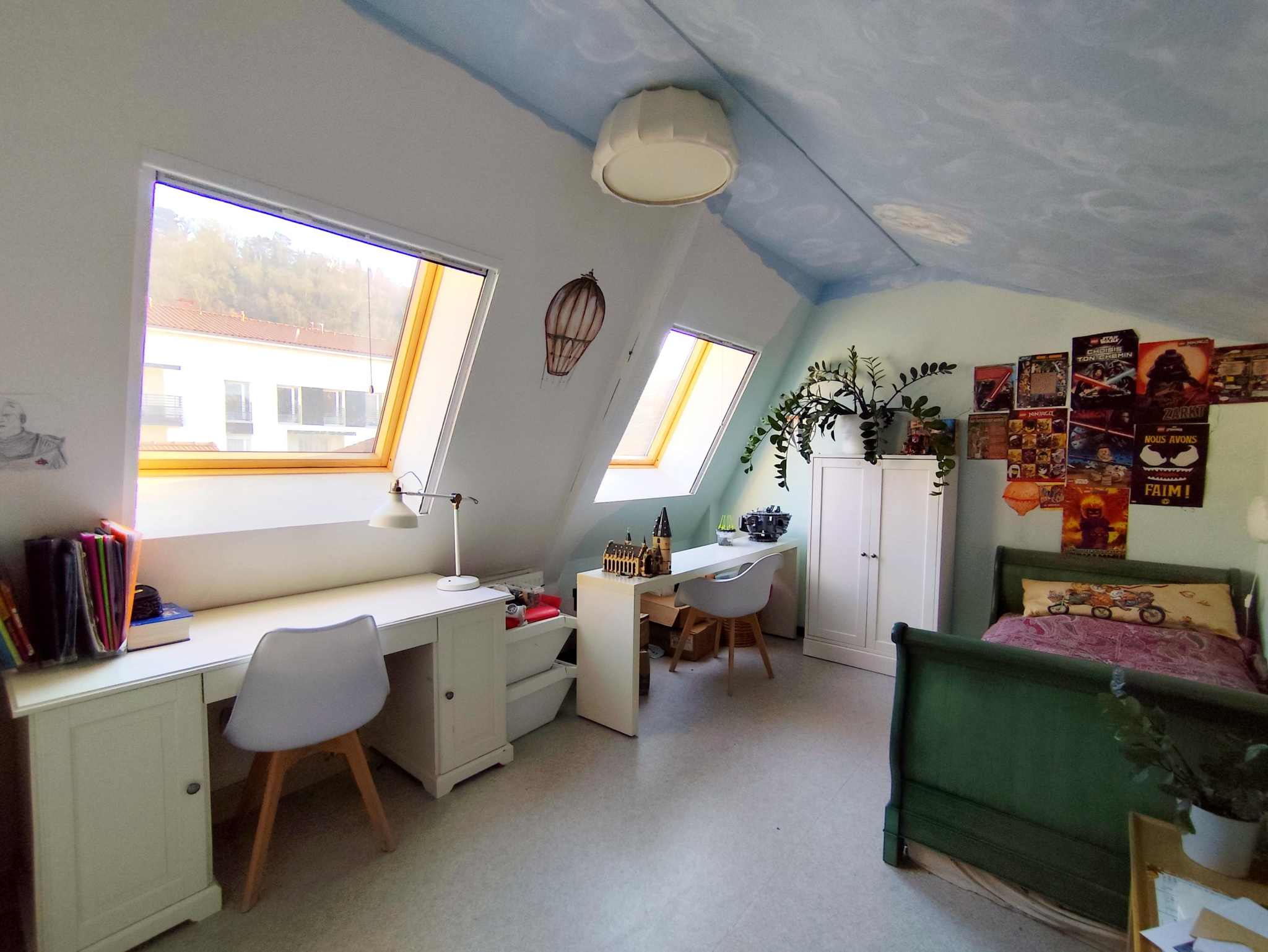 A l'étage, deux chambres lumineuses, chacune équipée de double vélux, offrant un espace nuit confortable et paisible.
