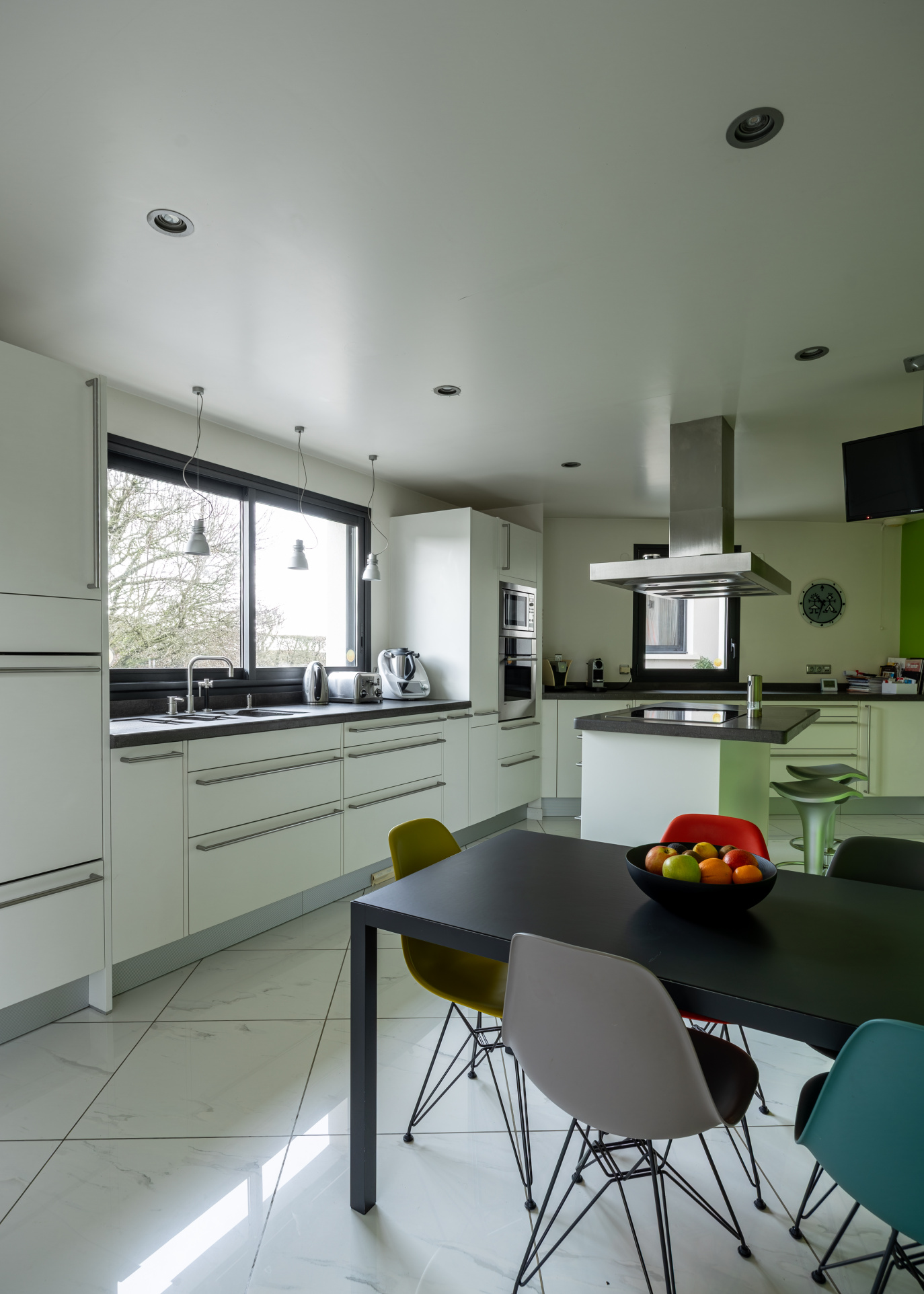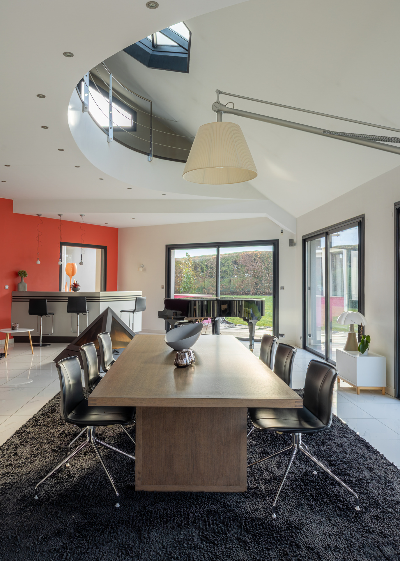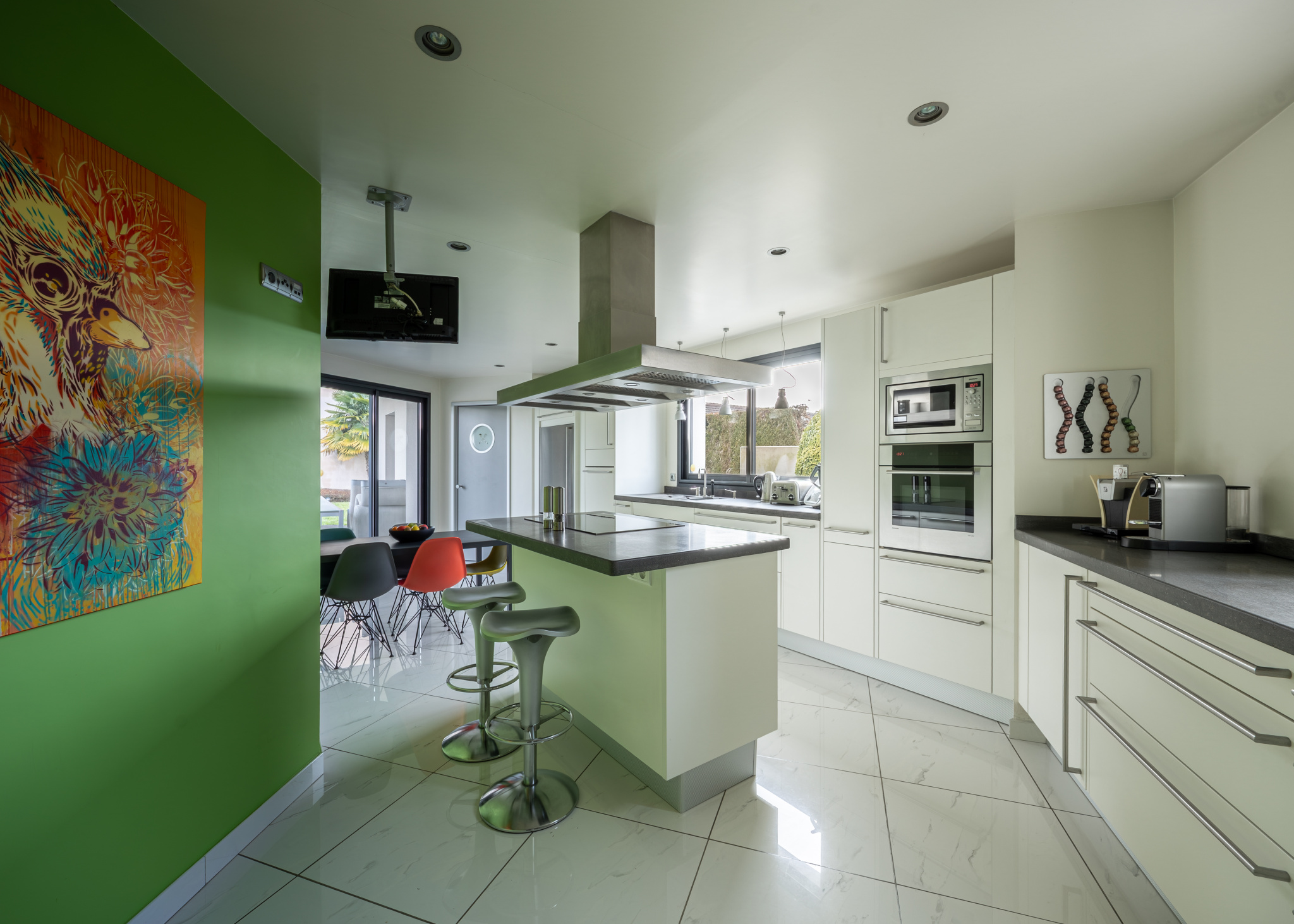 CUISINE EQUIPÉE HAUT DE GAMME, VASTES ESPACES DE RÉCEPTION DE 101,50 M2 ORIENTÉS SUR LE JARDIN AVEC CHEMINÉE, TERRASSE DE 140 M2