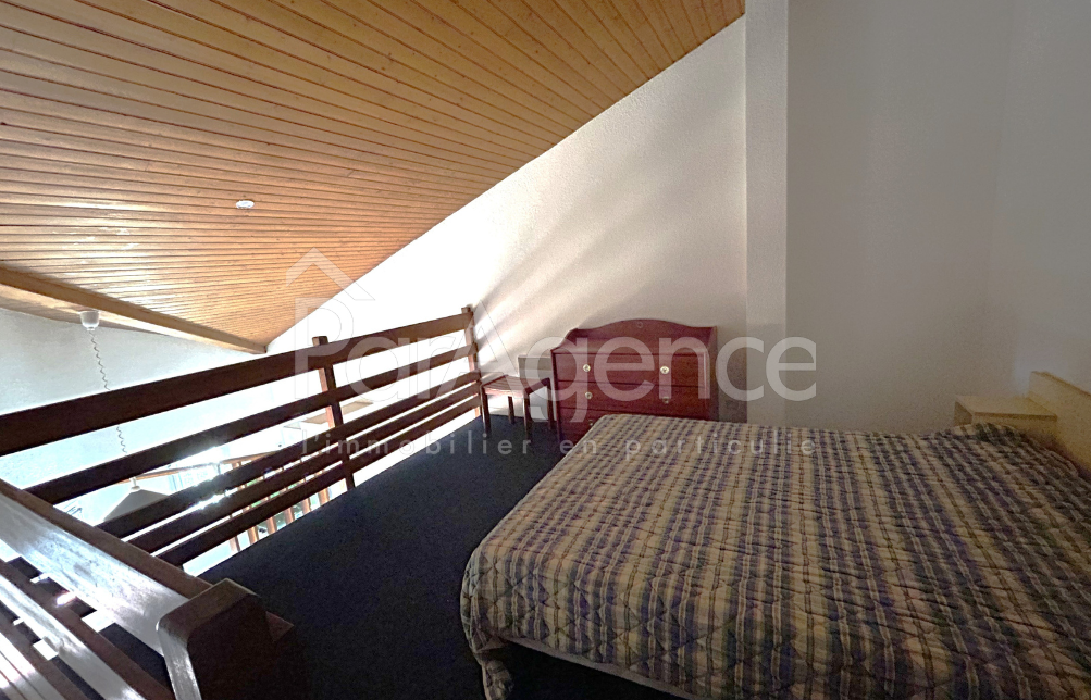 Étage : Une spacieuse mezzanine surplombe le séjour, idéale pour un espace nuit ou un coin bureau. La configuration duplex confère au logement un charme particulier et une sensation d'espace supplémentaire.