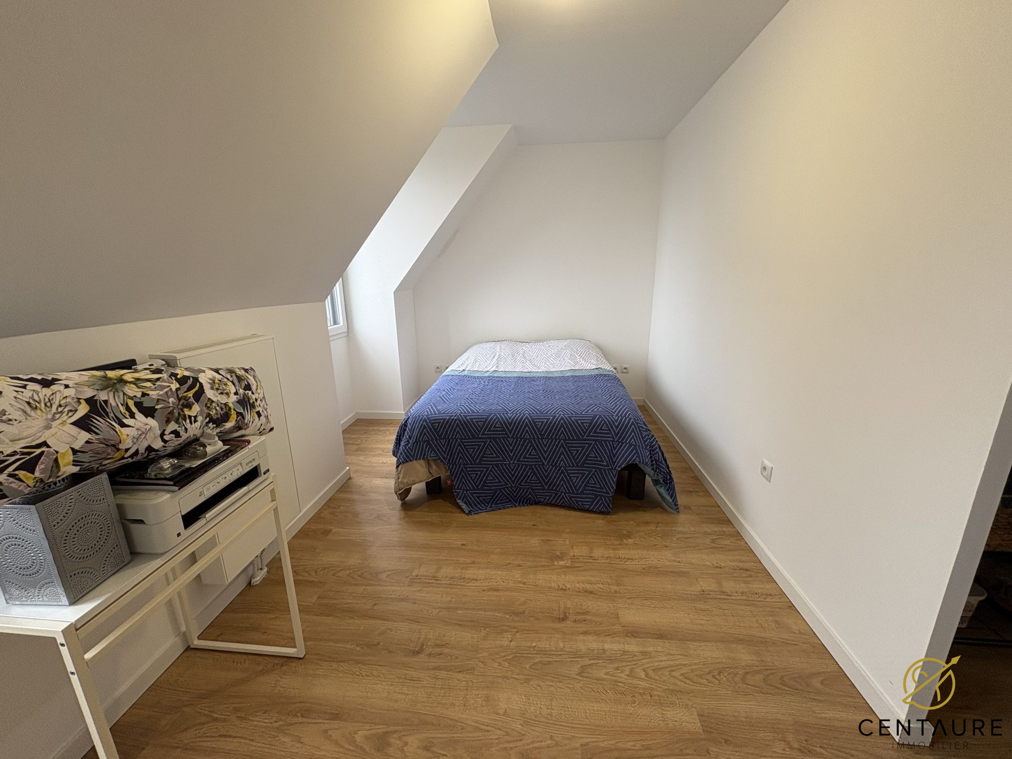 Il vous faudra en effet gravir quelques marches pour accéder à la partie nuit de ce bien, et gagner l'étage où se trouvent une vaste salle de bain (avec baignoire ET douche) ainsi que deux belles chambres avec rangements.