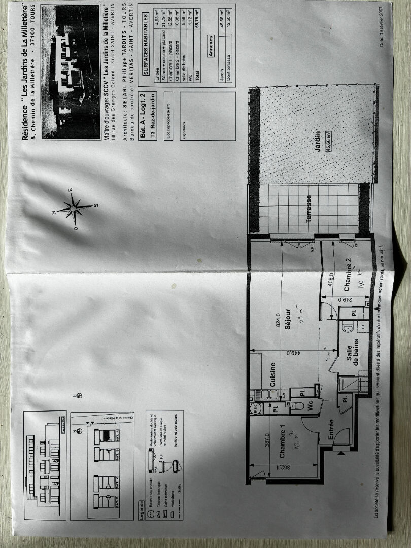 TOURS (37100), secteur Monconseil, proche toutes commodités et axes autoroutiers, dans résidence sécurisée de 2008, au calme , appartement T3 en rez de jardin, sans vis à vis avec garage et parking comprenant :