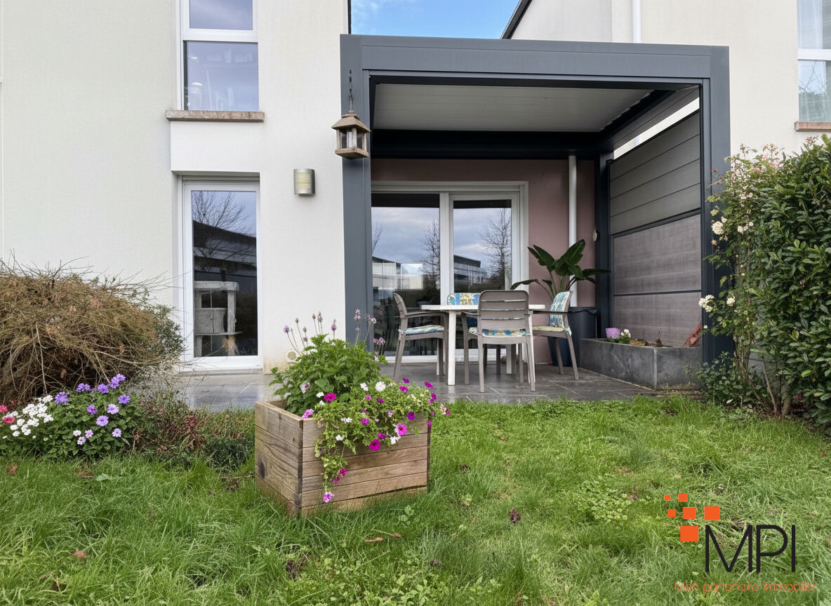 Agréable petit jardin avec terrasse et pergola bioclimatique, un garage avec électricité et point d'eau pour la machine à laver.