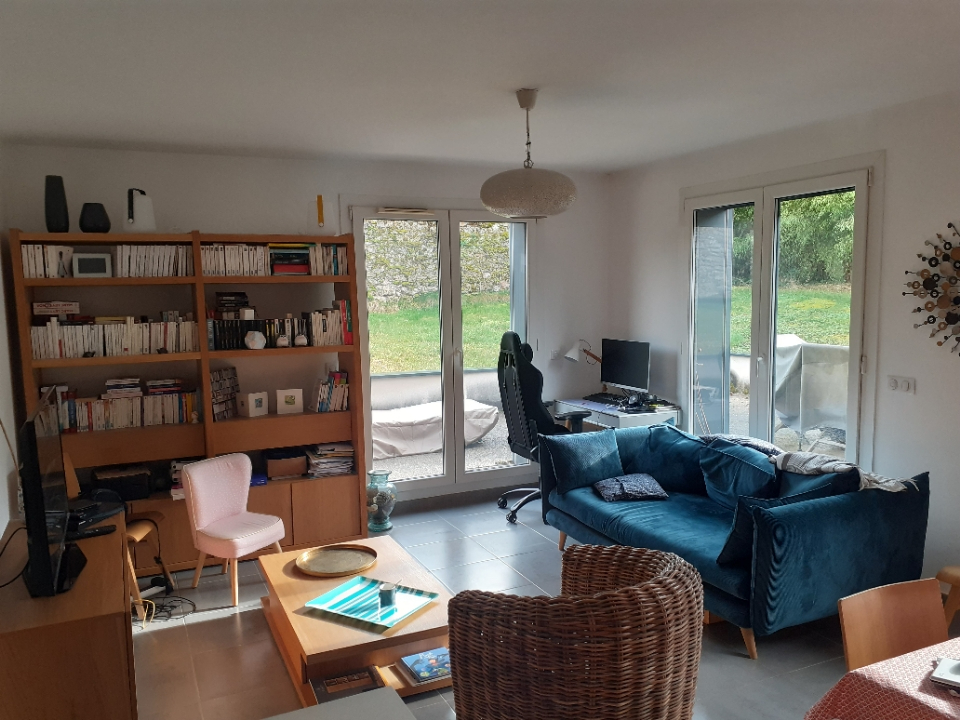 Appartement de 4 pièces de 85 m² avec grande terrasse de 40 m² et jardin; comprenant entrée avec placard, grande pièces de vie, trois chambres, salle de bains, WC.