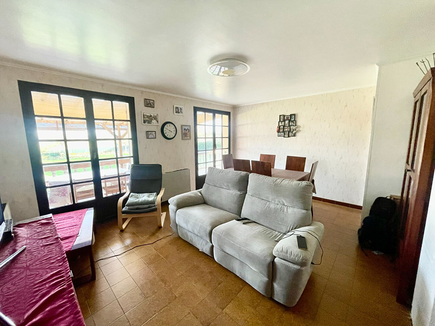 À l'extérieur, vous profiterez d'un beau jardin arboré de 1 490 m², complété par une terrasse couverte, un garage et un abri de jardin.