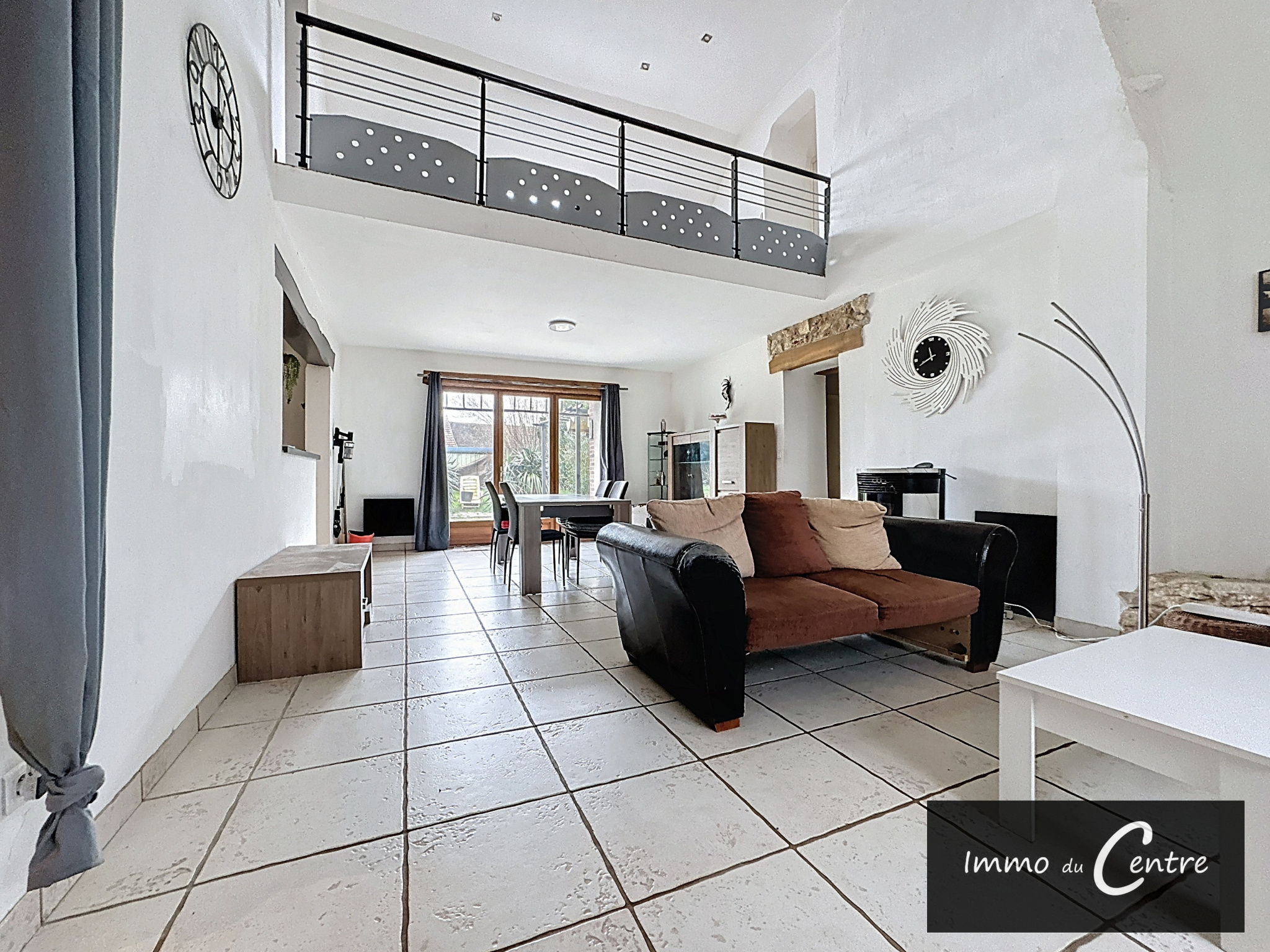 Maison à usage d'habitation avec vie de plain-pied comprenant : entrée, cuisine aménagée équipée ouverte sur salon séjour, dégagement distribuant chambre, salle de bains-douche, toilettes, à l'étage : mezzanine desservant deux chambres, en annexe : cour sur l'avant avec atelier, terrasse, terrain clos de grillage, le tout sur une parcelle de 912 m2 environ.