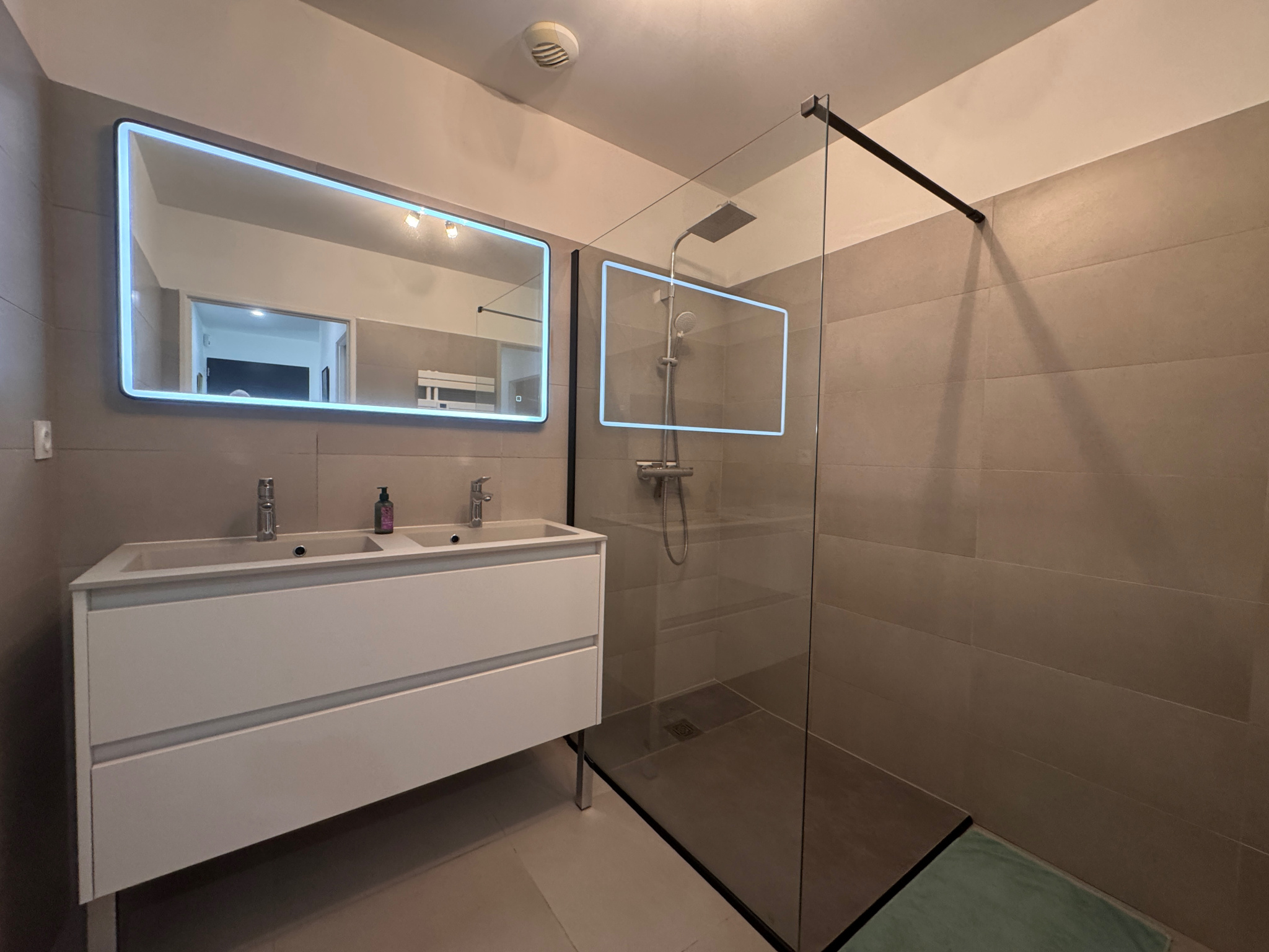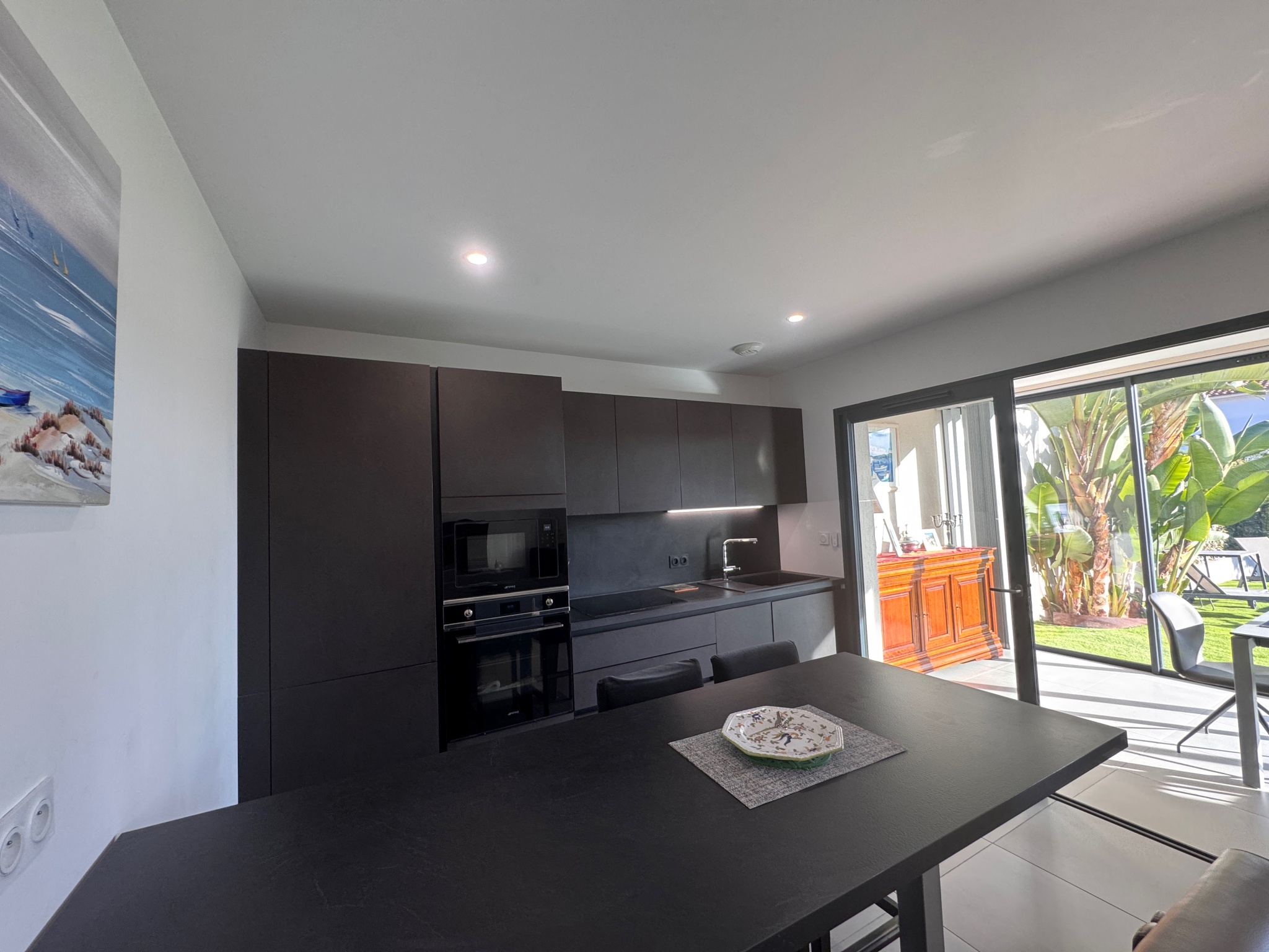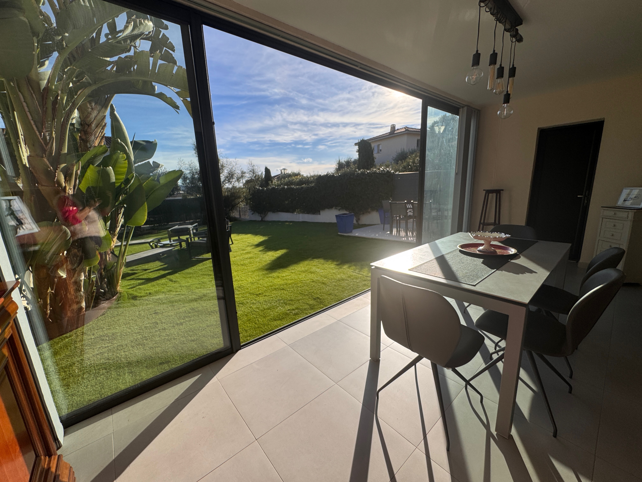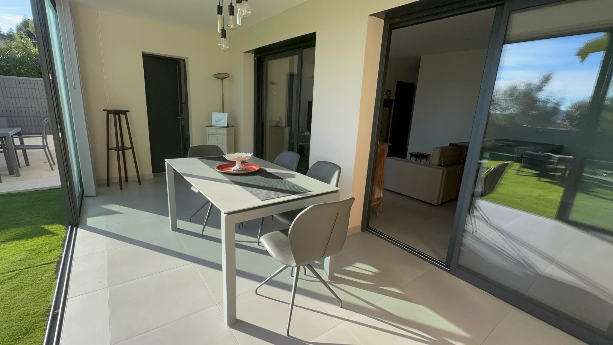 Dans une résidence intimiste de grand standing, découvrez ce superbe appartement T3 de 54 m2 habitables, agrémenté d'une véranda sécurisée de 16 m2 ouvrant sur un magnifique jardin privatif de 153 m2 exposé plein sud. L'entrée dispose de placards intégrés, la cuisine aménagée et équipée est ouverte sur un séjour lumineux. L'espace nuit comprend deux chambres avec rangements, une salle d'eau moderne et des toilettes séparées. Un garage avec rangements, une buanderie attenante ainsi qu'une place de parking privée complètent ce bien rare. Prestations de qualité ( climatisation réversible, alarme intérieur extérieur , arrosage automatique , volets éléctriques ) dans environnement calme et sécurisé, idéal pour profiter pleinement de la douceur de vivre à Sanary.