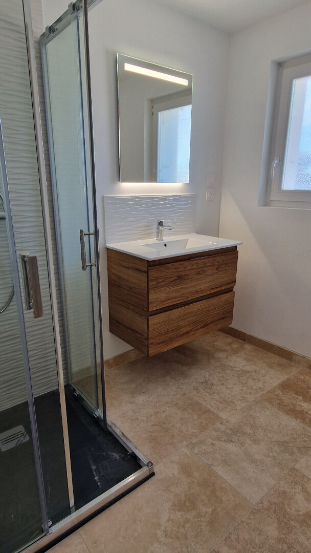 Sébastien vous propose dans un environnement au calme cette jolie maison rénovée comprenant une lumineuse pièce à vivre d'environ 55m² avec cuisine américaine aménagée , 4 chambres dont 2 de plain pied.